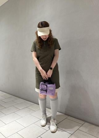 【UV】【吸水速乾】ドロスト使い半袖ポロワンピース