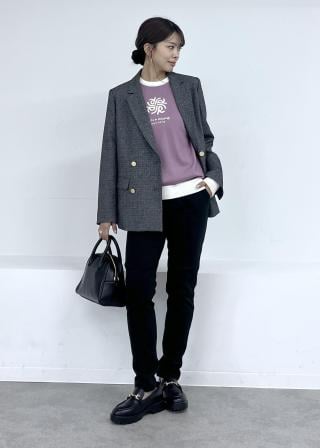 ややドロップショルダー仕様+全体にゆとりがあり、中にインナーを重ねやすく、長い時期の着用を見込めます。