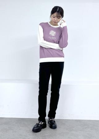バイカラーの3色展開のニットで、冬場のコーデのアクセントにもなります。