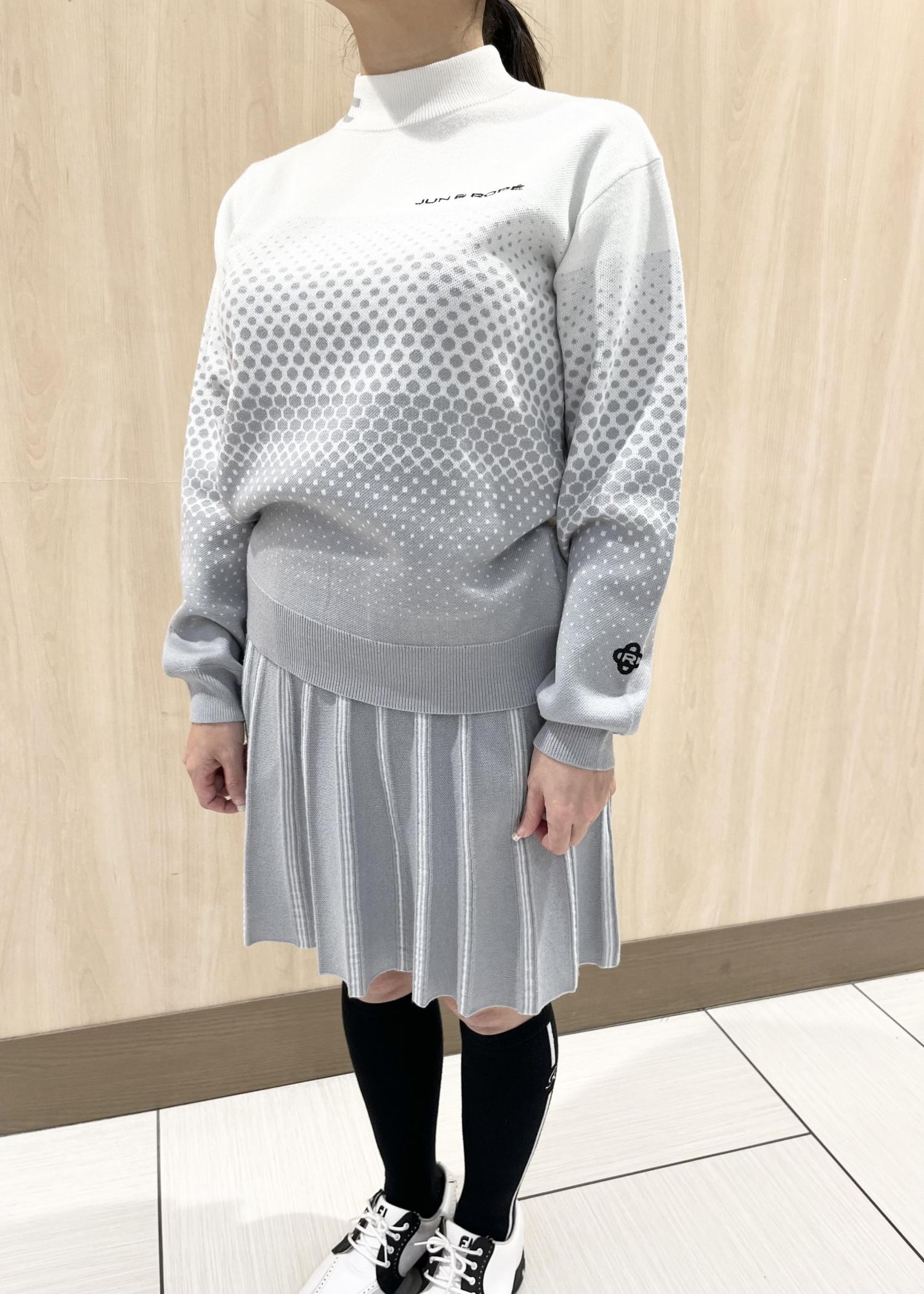 アウトレットJun & Ropéライン使いニットスカートグレー / S¥6,600レビューウエストがゴムになっていてフィット感があり動きやすいデザインです。ニットの程よい重みが裾をヒラヒラさせ過ぎない甘さを抑えたフレアーです。ニット地で暖かみのある素材なのでこれからの季節におすすめです。