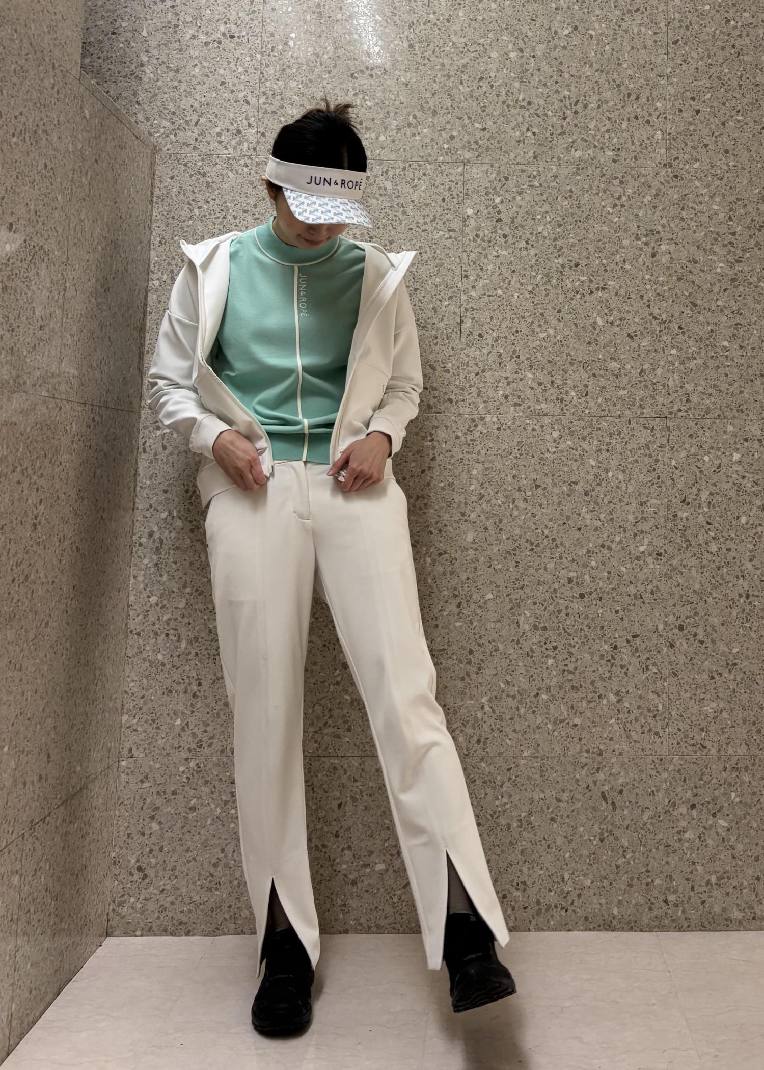 スラックスを合せれば、上品なコーデで