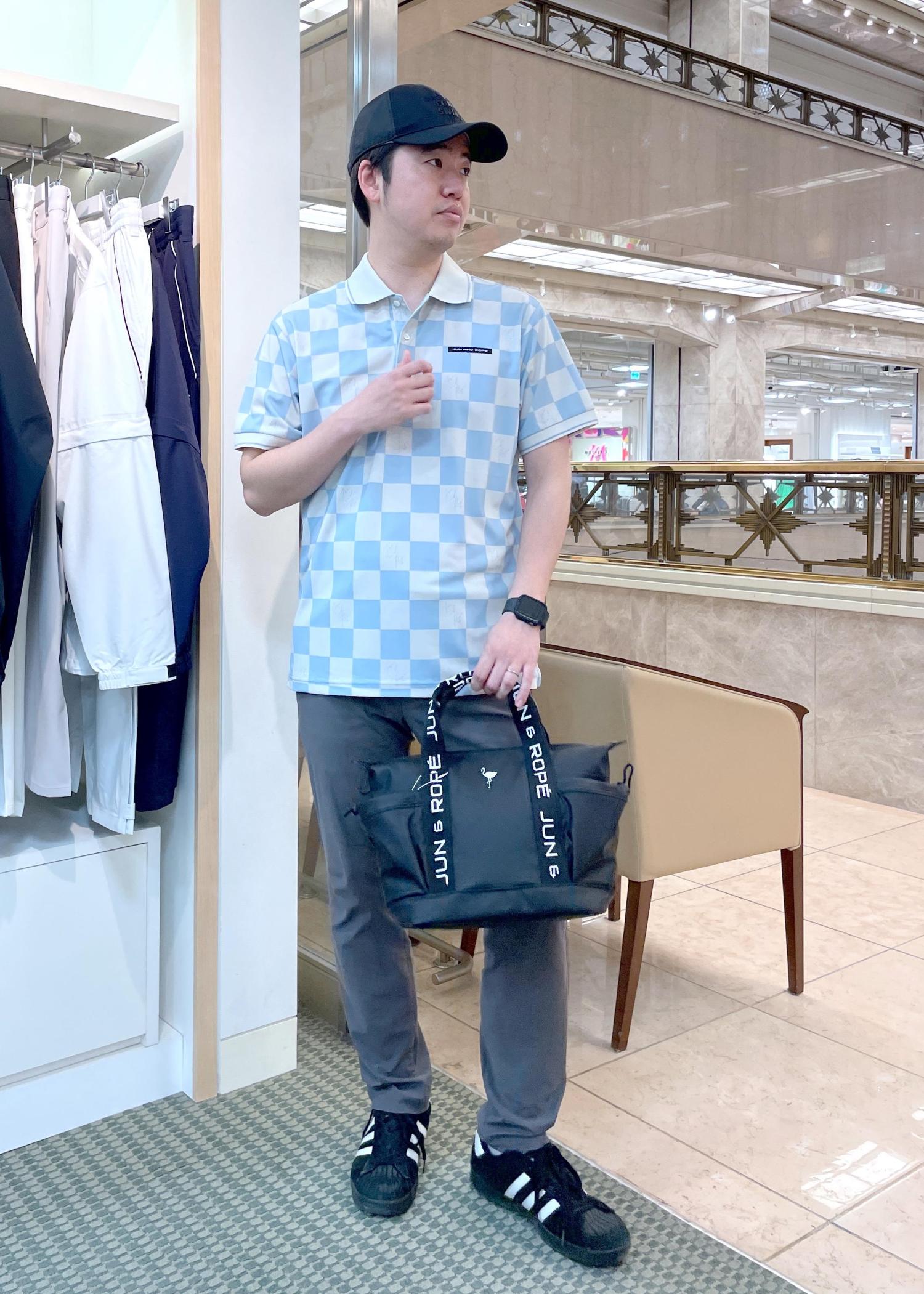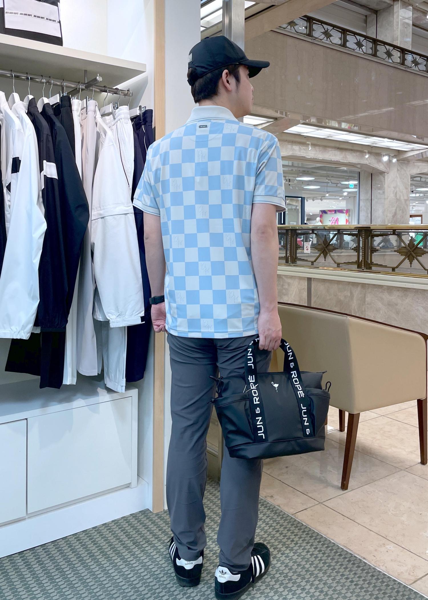 Jun & Ropé【浅地洋佑プロ着用】【UV】【吸水速乾】チェッカープリント半袖ポロシャツサックス / L¥22,880レビューチェッカーフラッグ柄が目を引く半袖ポロシャツ