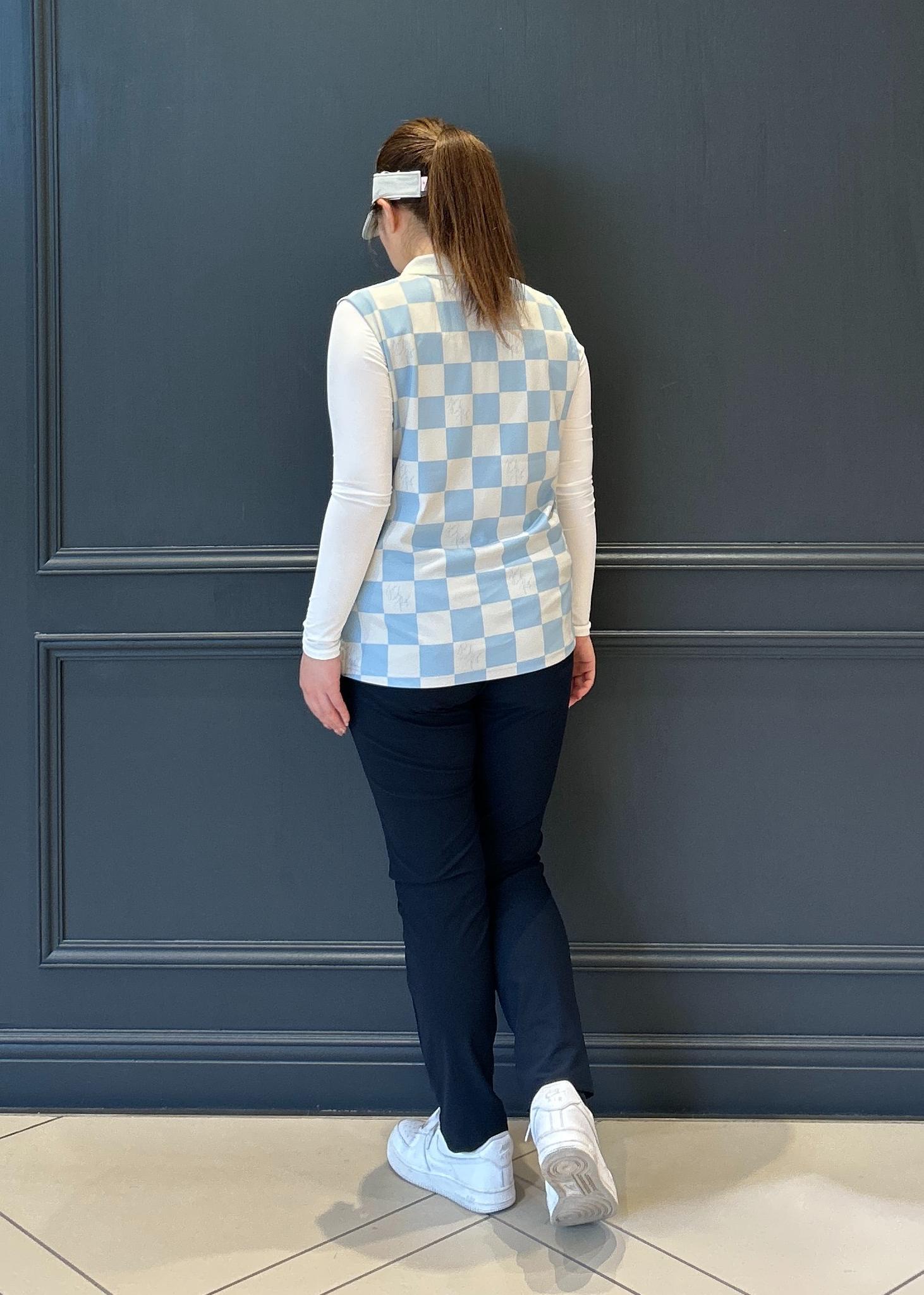 Jun & Ropéチェッカーボード柄ノースリーブポロサックス / L¥21,120レビュー155㎝、Lサイズ着用