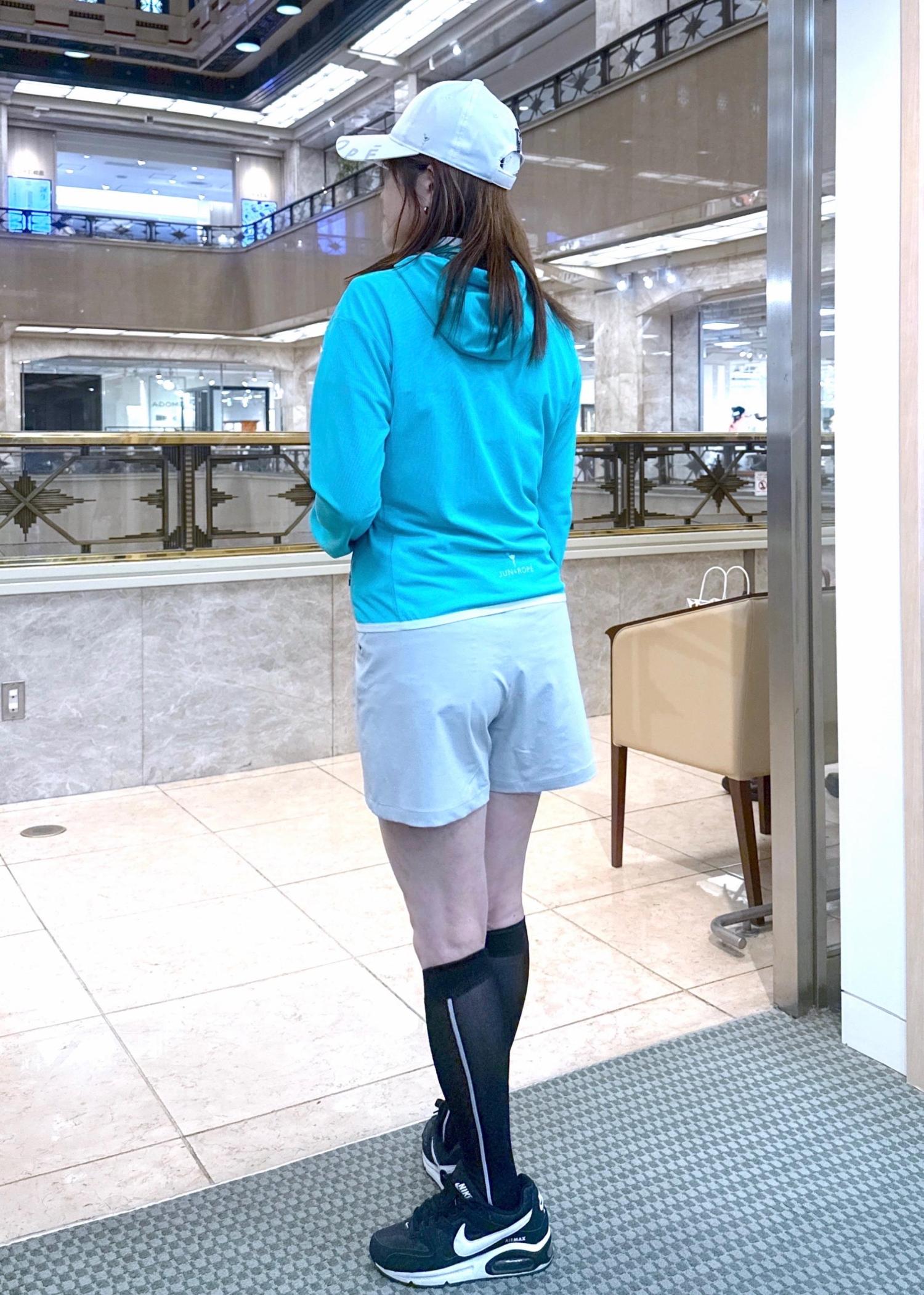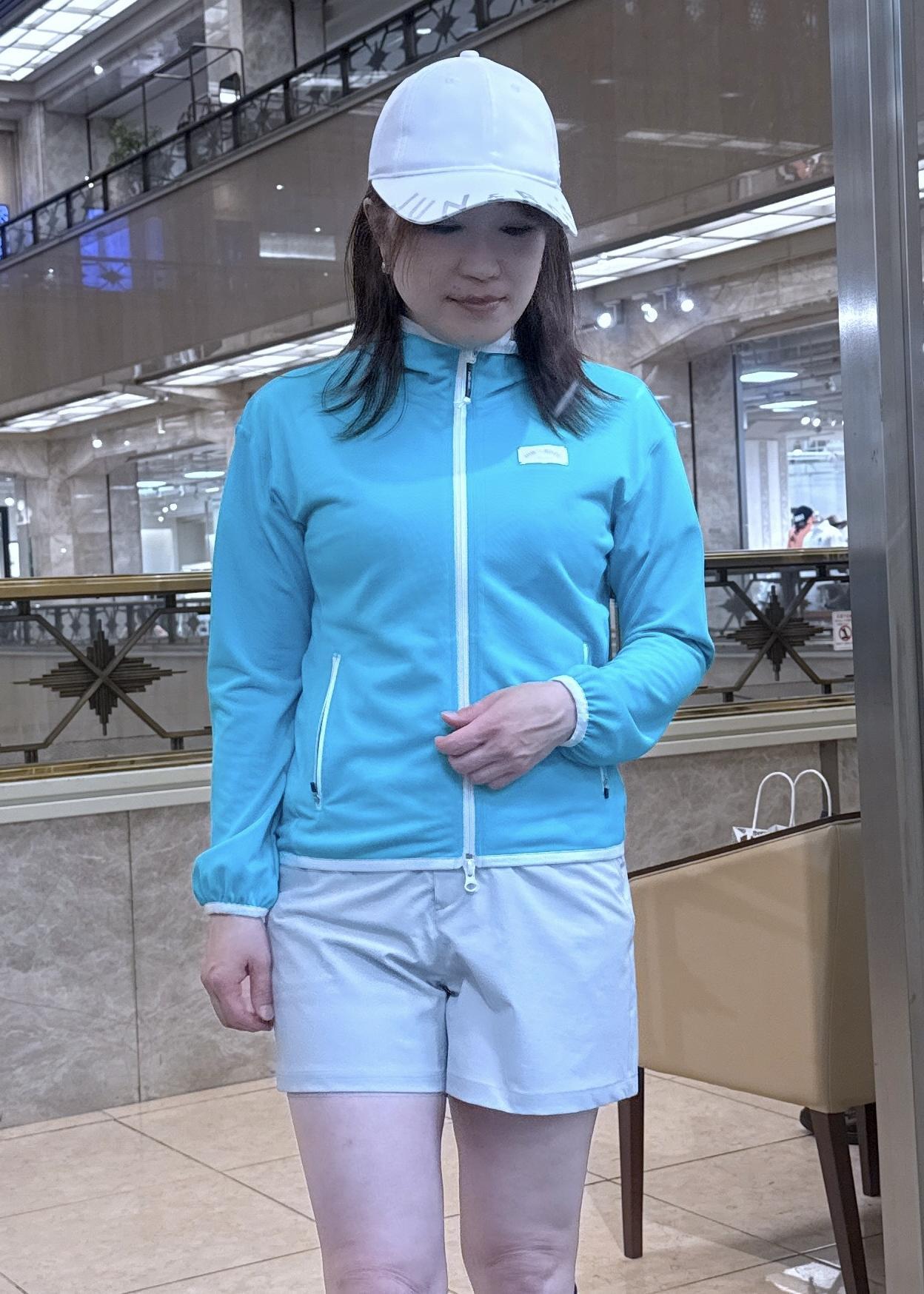 こちらのキレイなティファニーブルーのパーカーは、薄手のメッシュを使用しているので、さらっとしていて肌に張り付かなくて気持ちがいい!