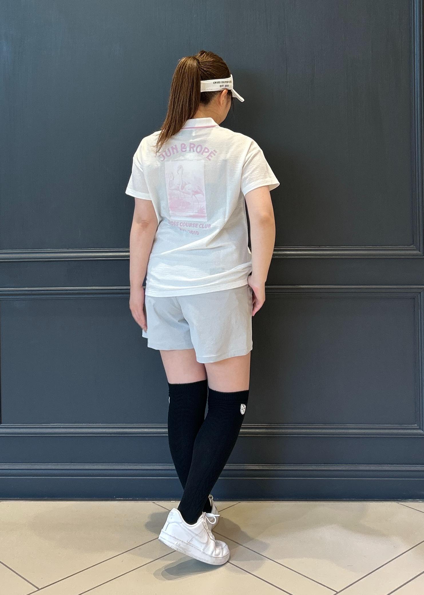 アウトレットJun & Ropéシアサッカーフラミンゴ半袖ポロホワイト / M¥7,590レビュー155㎝でMサイズ着用