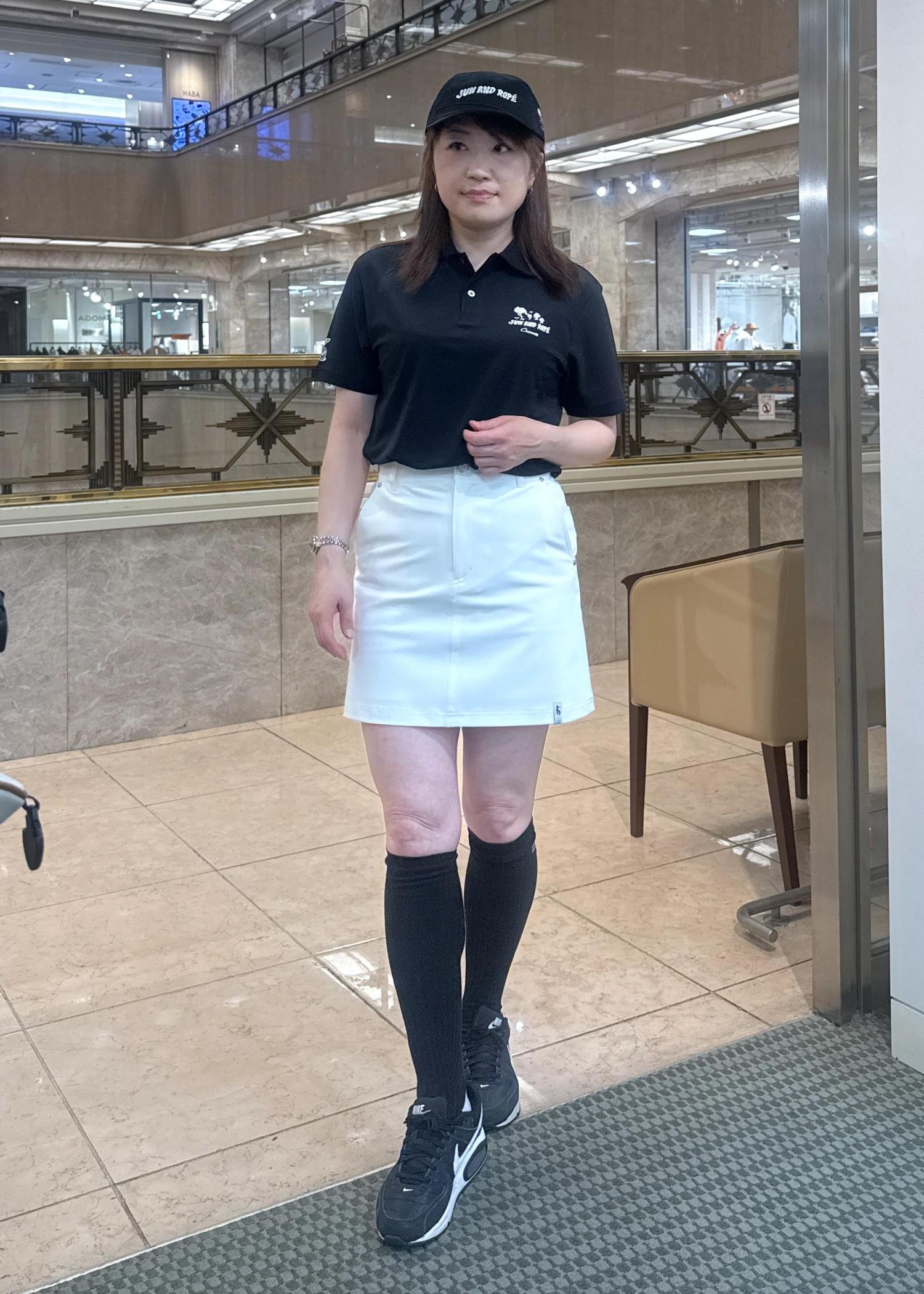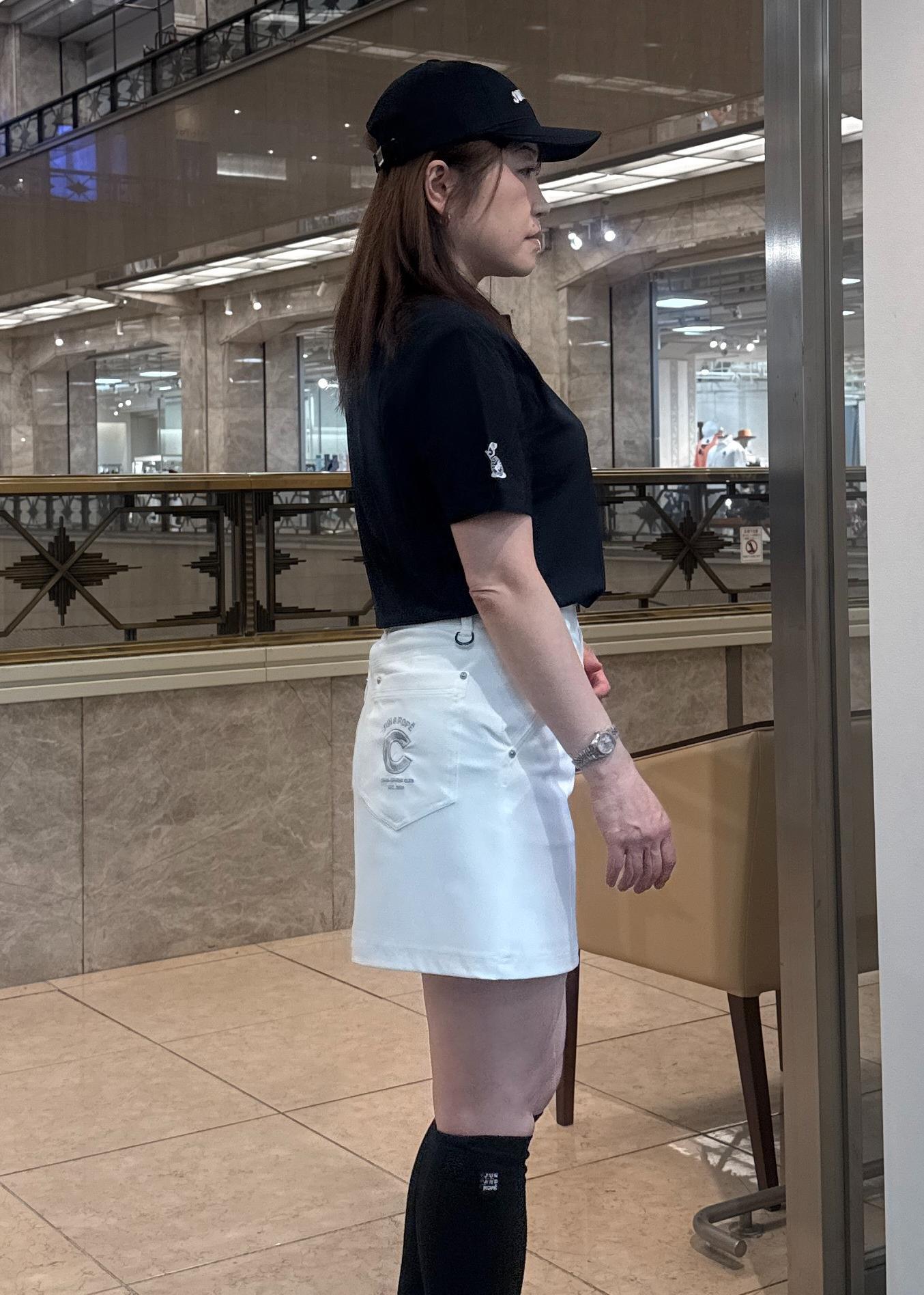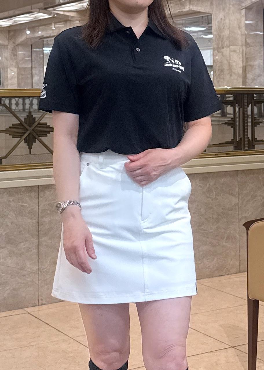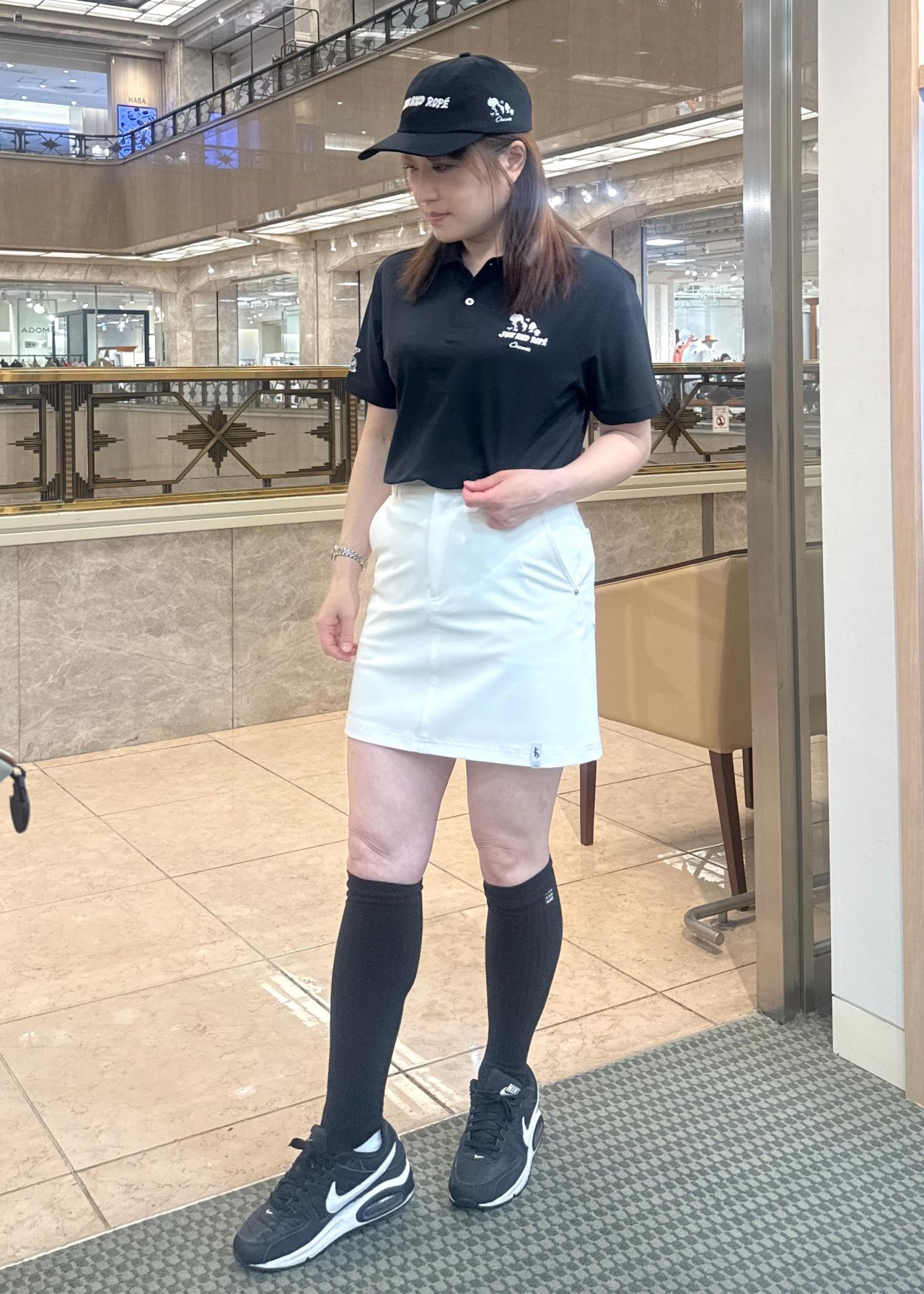 ゴルフウエアですが、普段使いできるポップなプリントなので、ロングスカートに合わせたりらデニムと合わせたり使いやすいですよ! -