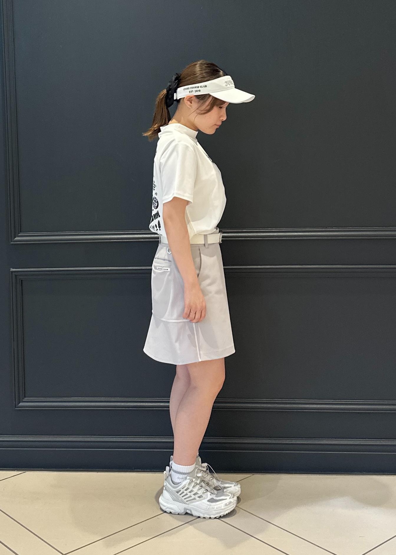 ライトグレーのスカートを合わせて、ワントーンでまとめたスタイリングは、クリーンさとこなれ感を両立◎