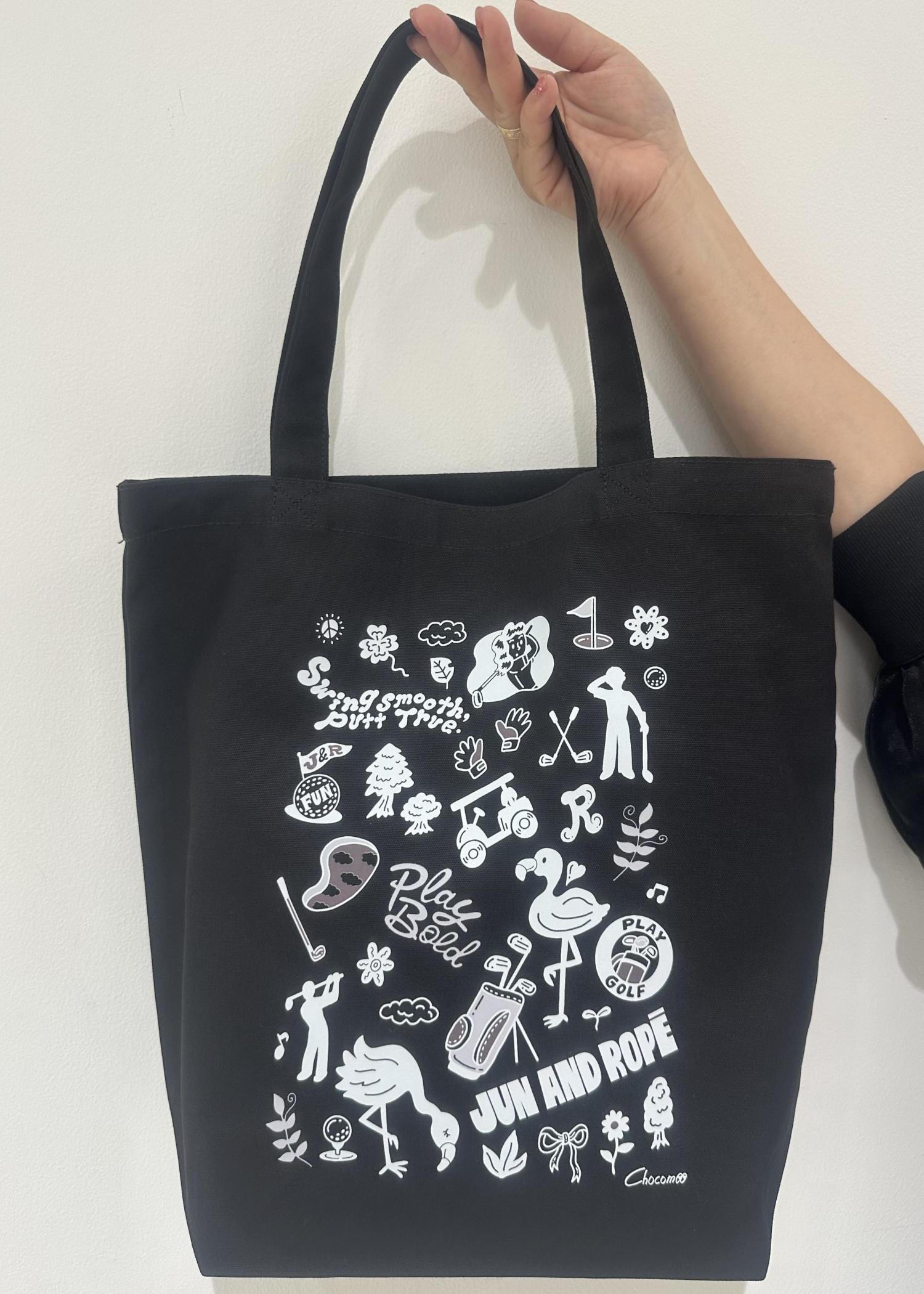 Jun & Ropé【Chocomoo×JUN&ROPE'】コラボキャンバストートブラック / F¥2,750レビューA4も入る使いやすいサイズ感