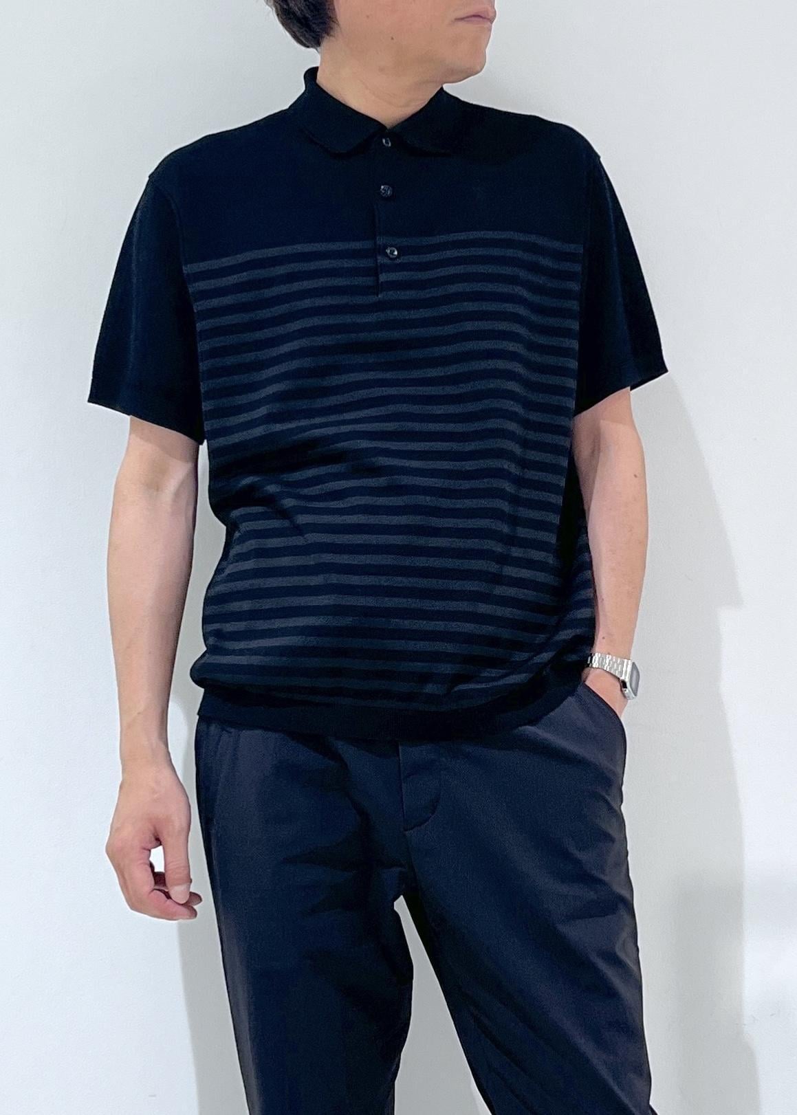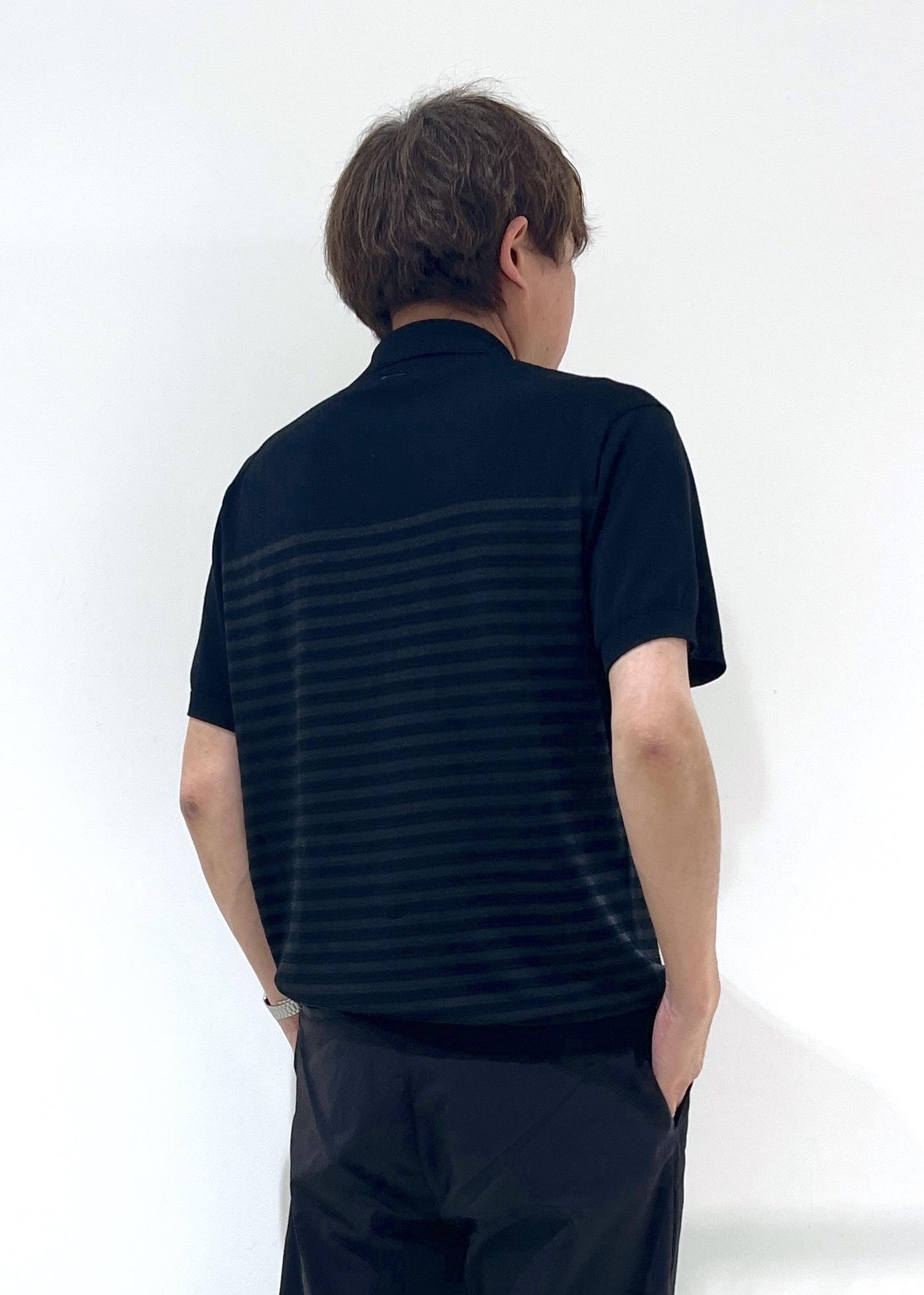 アウトレットJun & Ropé【NOIR】16ゲージボーダーニットポロシャツブラック / M¥14,850レビュー程よい厚みと自然な肌触りが魅力のニットポロ。