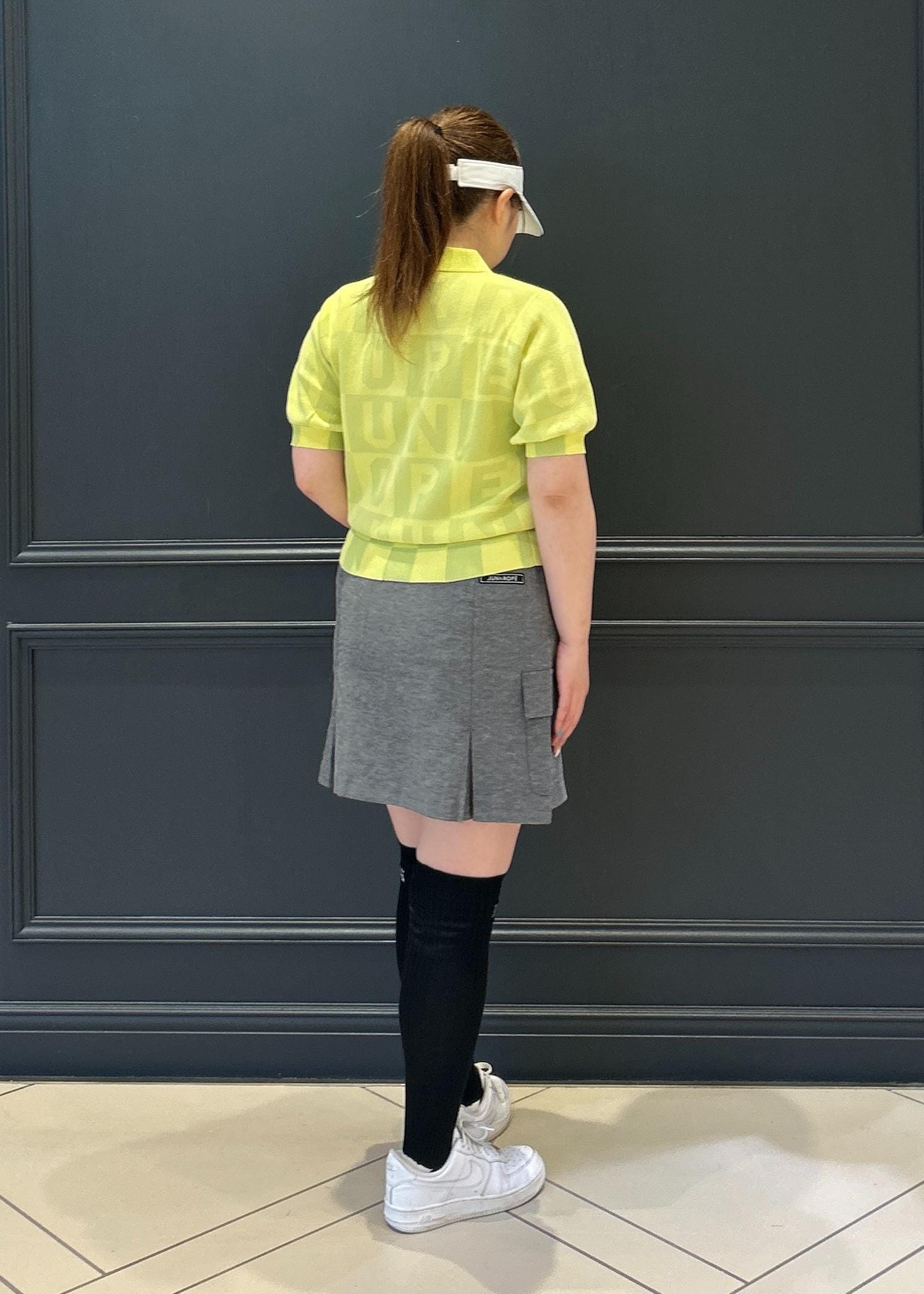 季節の変わり目に重宝するニットポロシャツ!大胆なロゴデザインですが、女性らしい大人っぽいデザインになっています!このリネン素材を使用したボックスプリーツのスカートと合わせると上品さを演出できますよ!◎