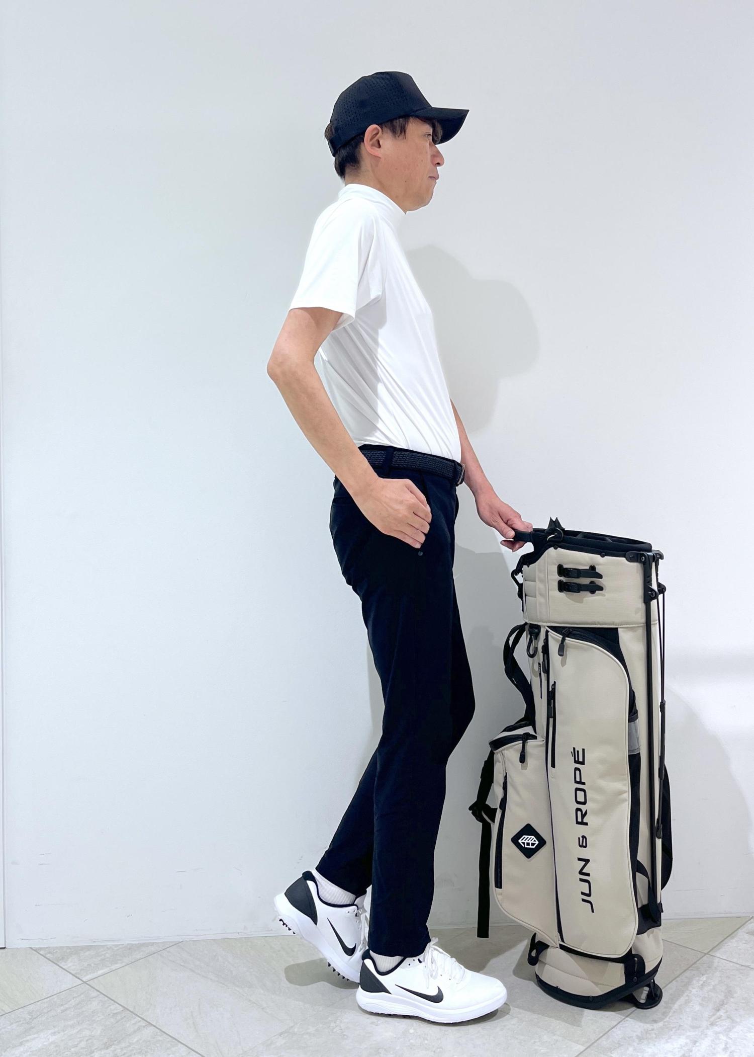 ストレッチパンツで快適な夏ゴルフスタイル。