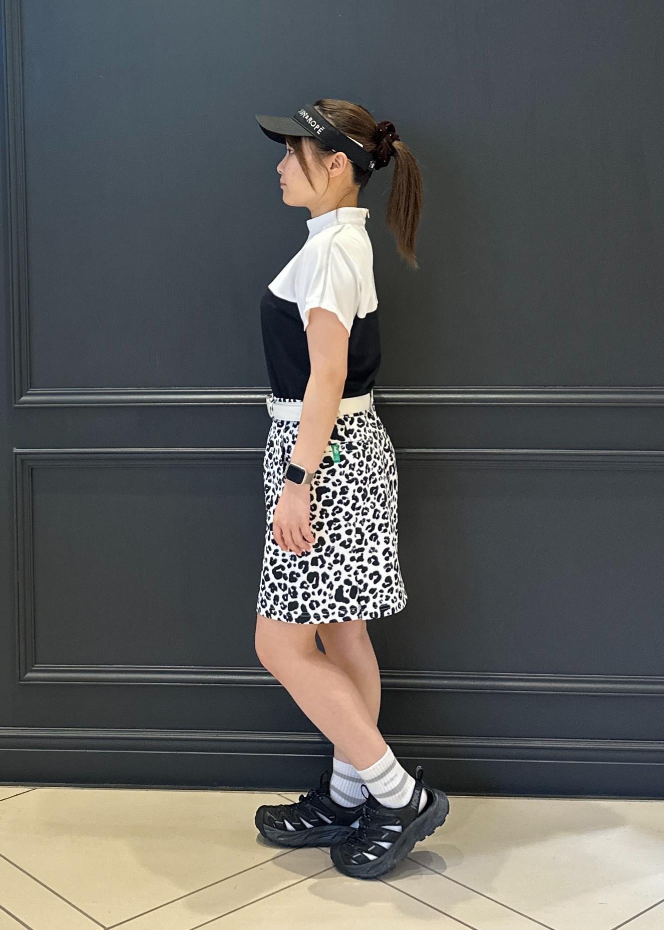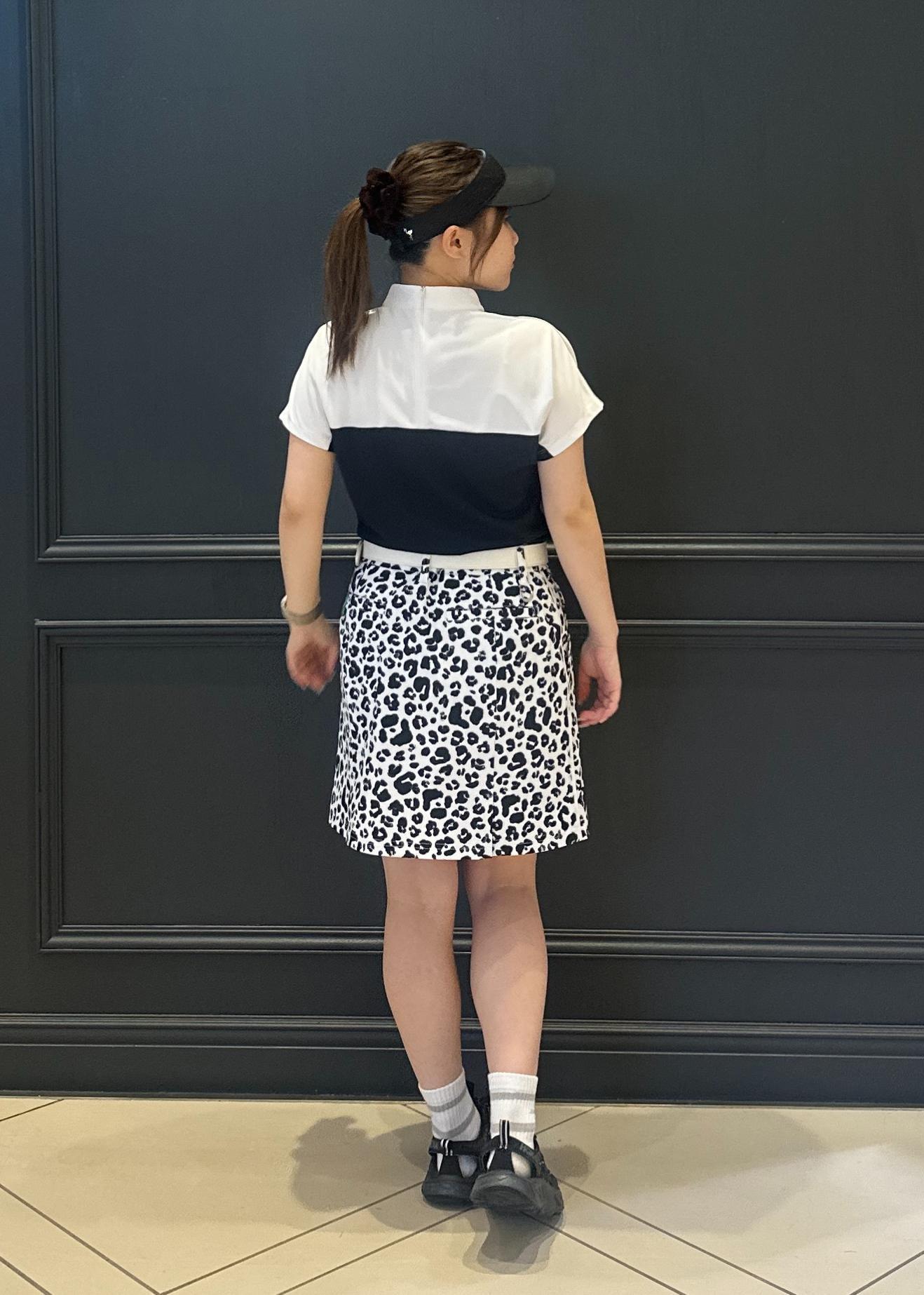 切り替えデザインのトップスにアニマル柄をプラスすることで、遊び心のあるスタイルに◎