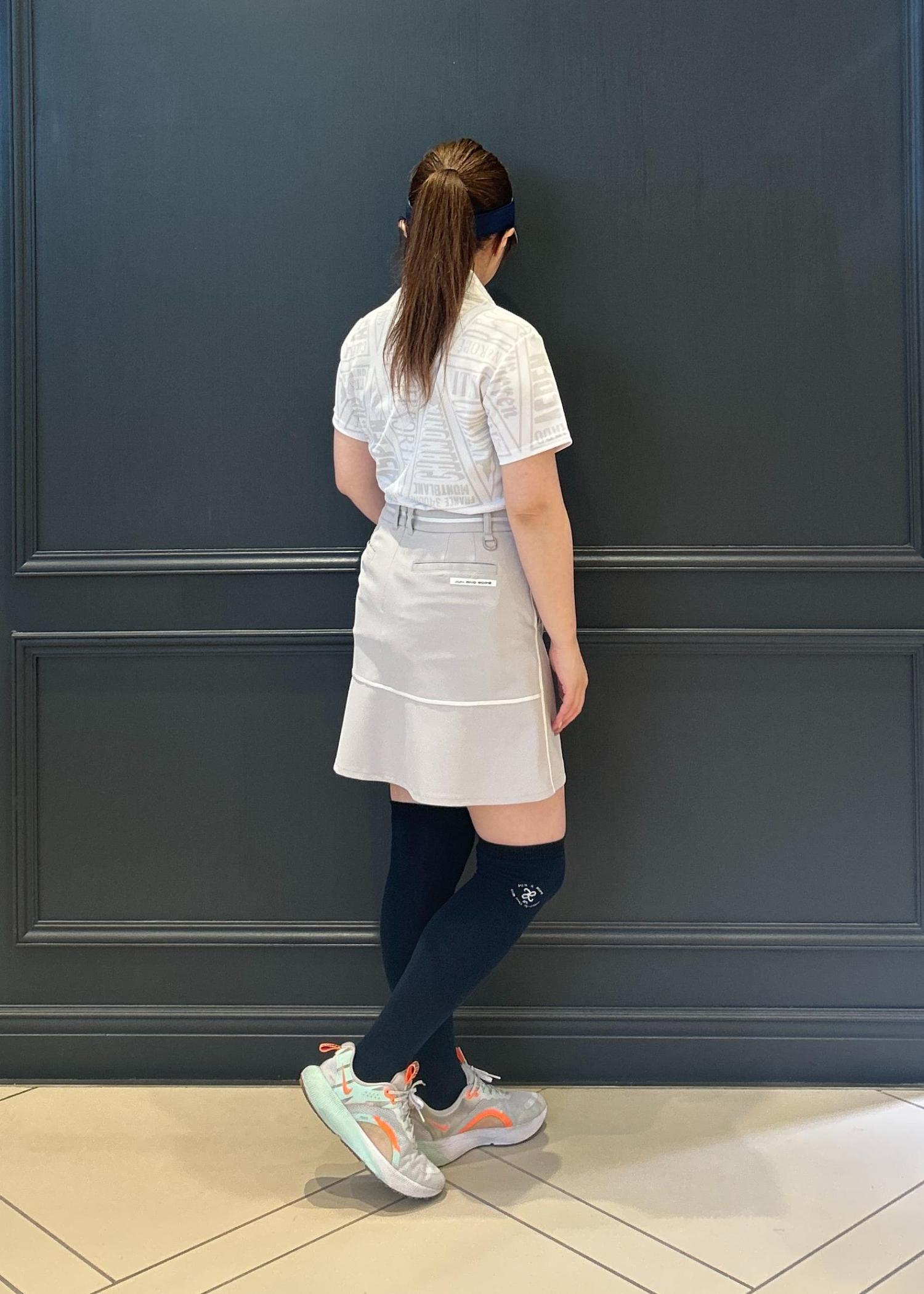 今回は秋の新作ポロシャツと夏物のスカートとのミックスコーデです!ポロシャツは秋の新作ですがUV機能を備えた素材で、暑い季節も快適に着こなせる一枚です!◎