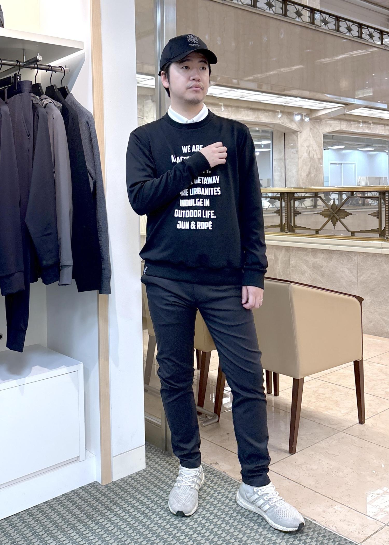 Jun & Ropéストレッチダンボールプリント長袖プルオーバー/UV・撥水ブラック / L¥29,700レビュー軽量でシワになりにくく膨らみのもったダンボールニット素材を採用したトレーナー。