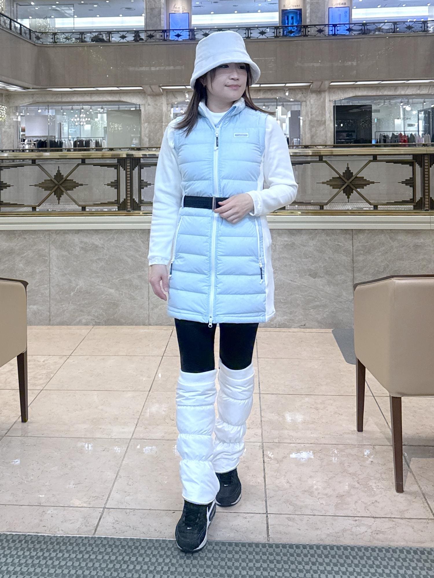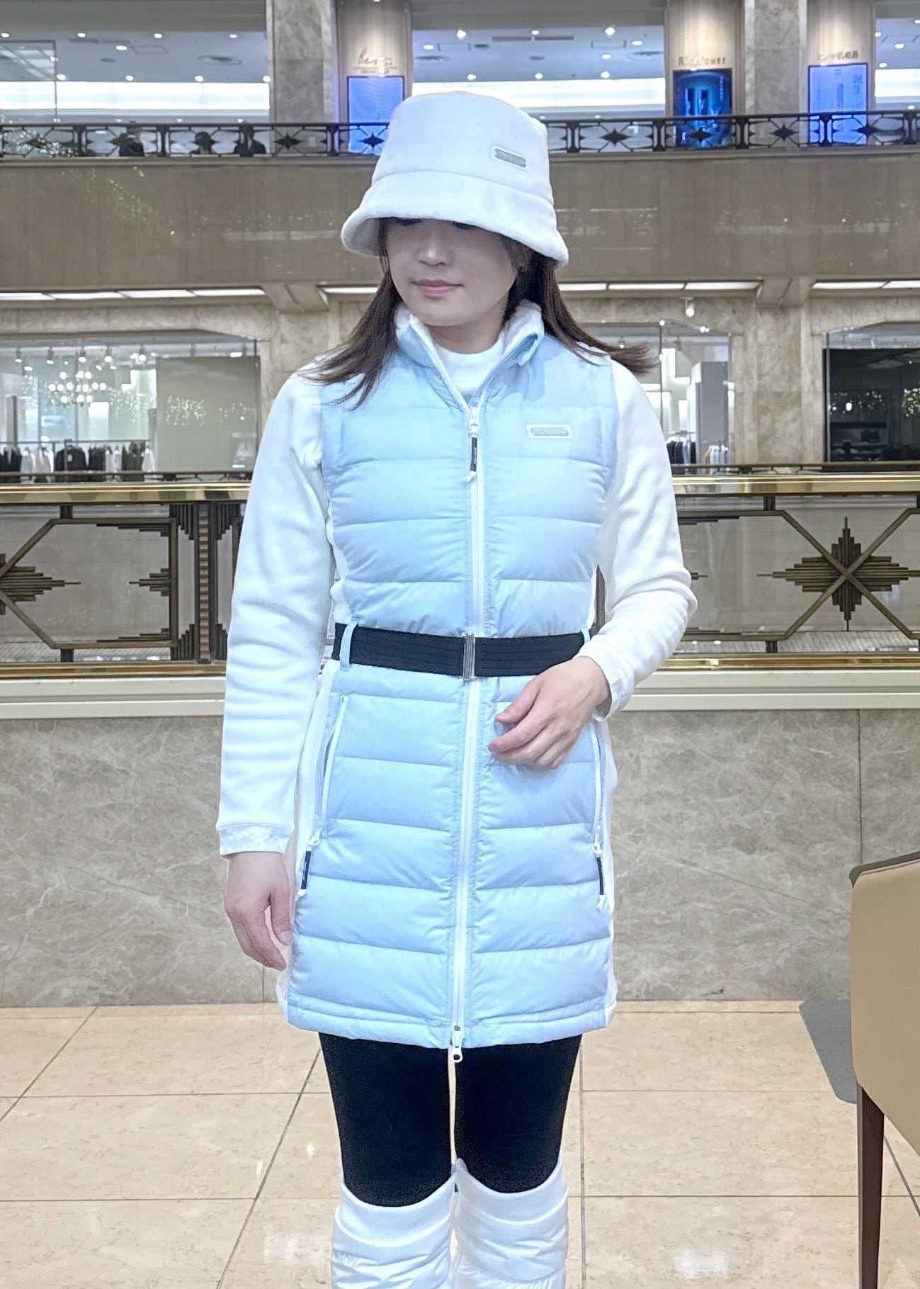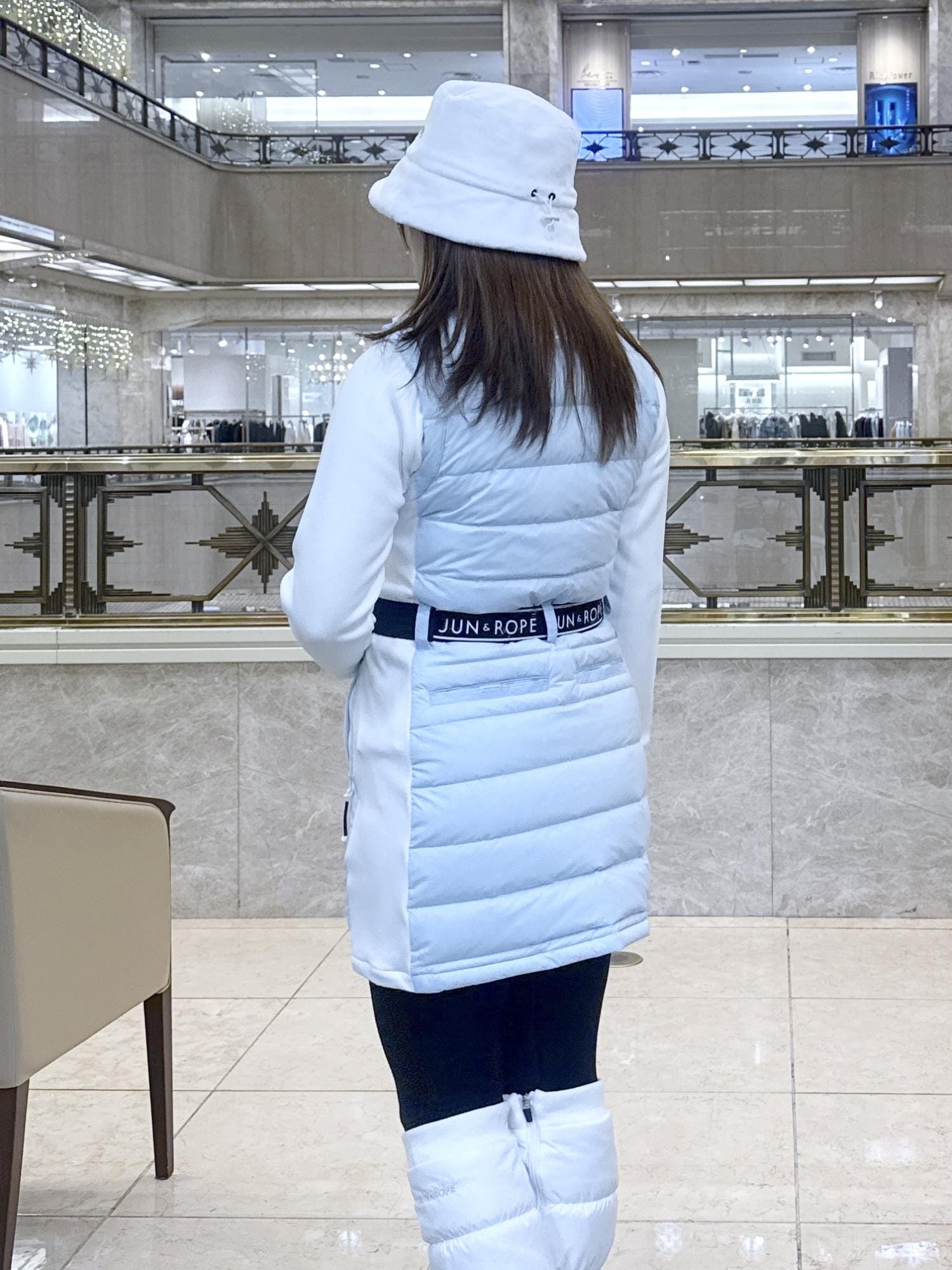 毎年人気のダウンワンピースが、今年はなんともキレイなアイスブルーが加わり華やかな冬のスタイリングが楽しめます♪