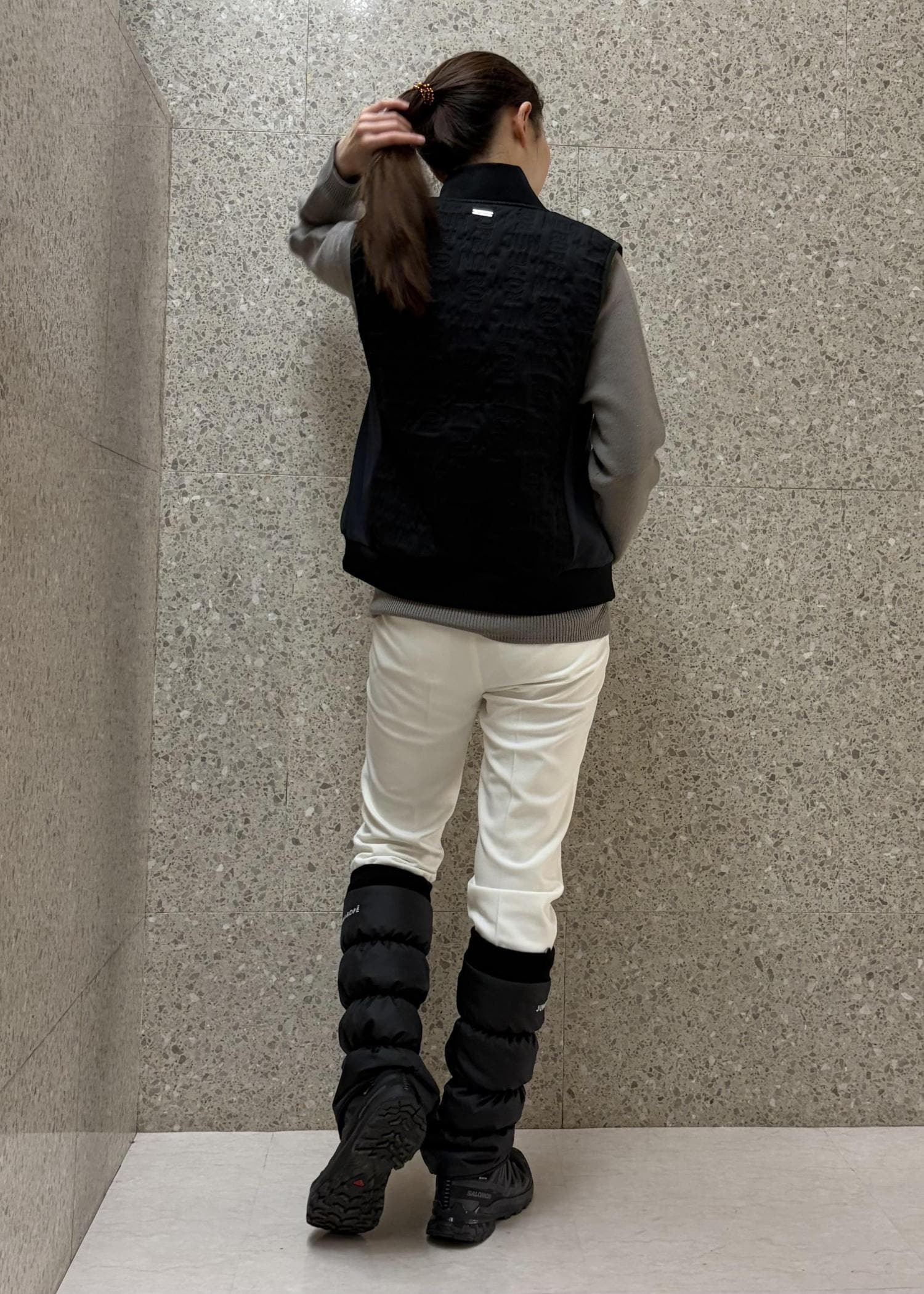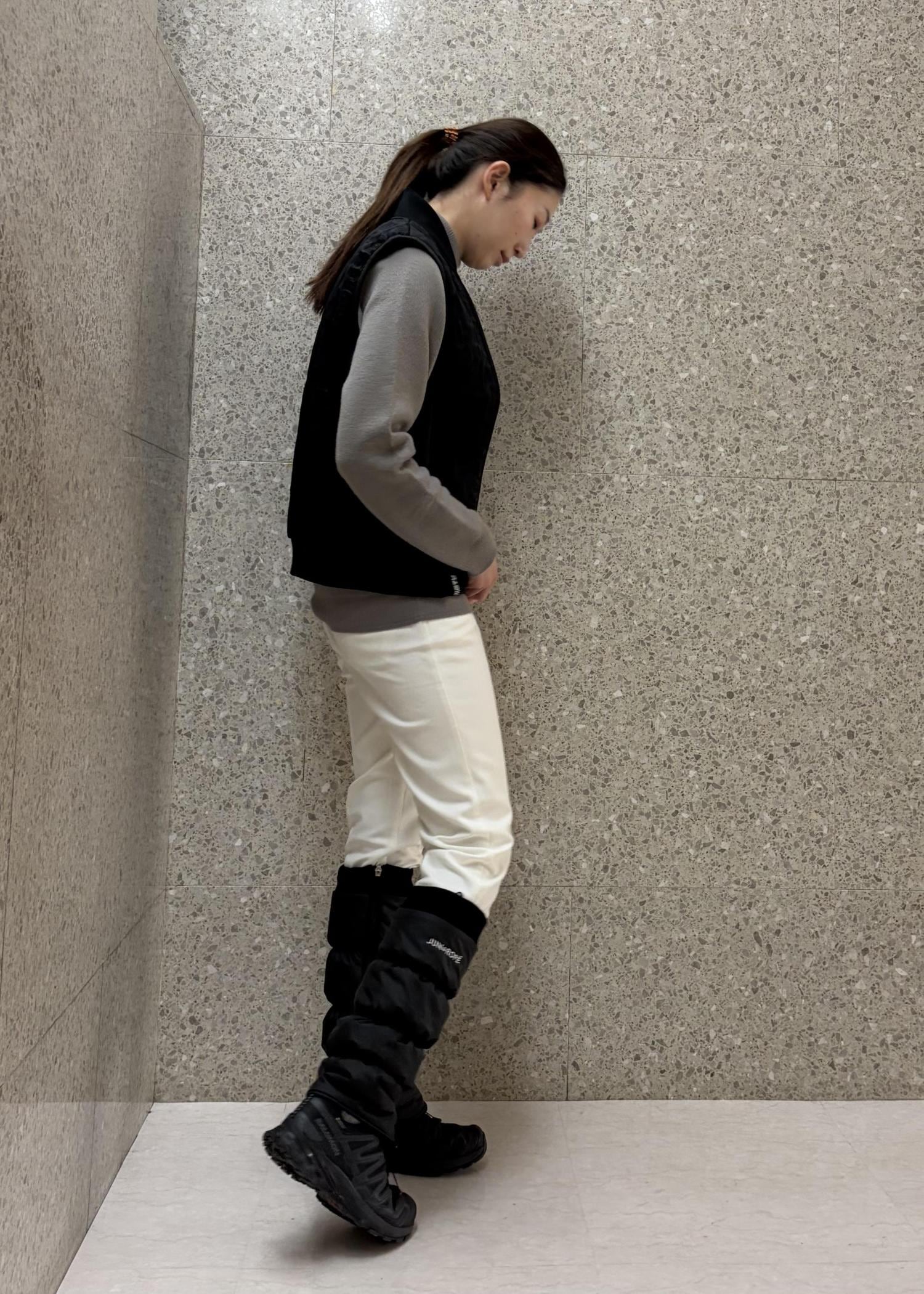 Jun & Ropé中わたレッグウォーマー/撥水・防風ブラック / F¥13,200レビュー内側にアジャスターがあり、着るボトムに合わせて調整可能。