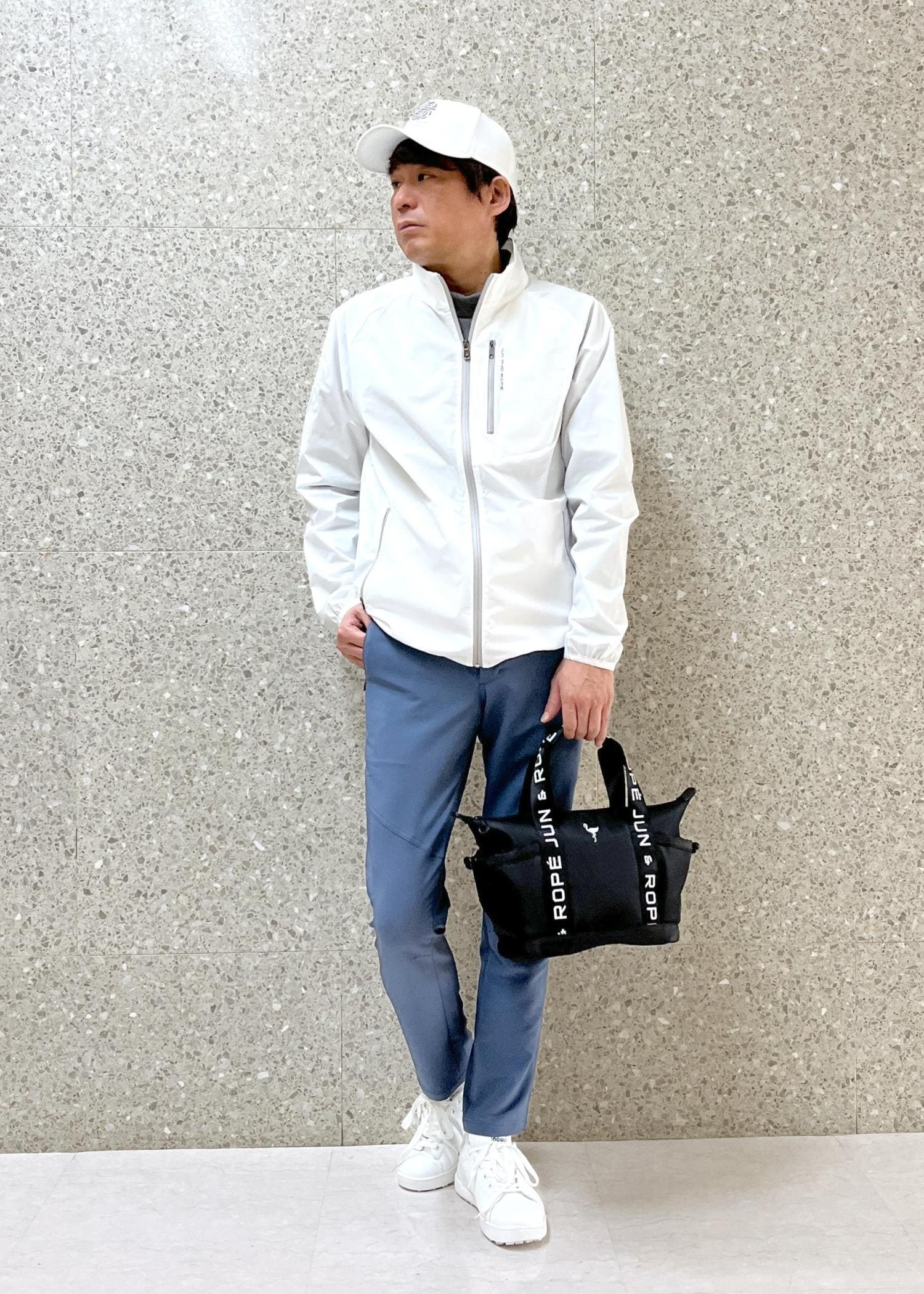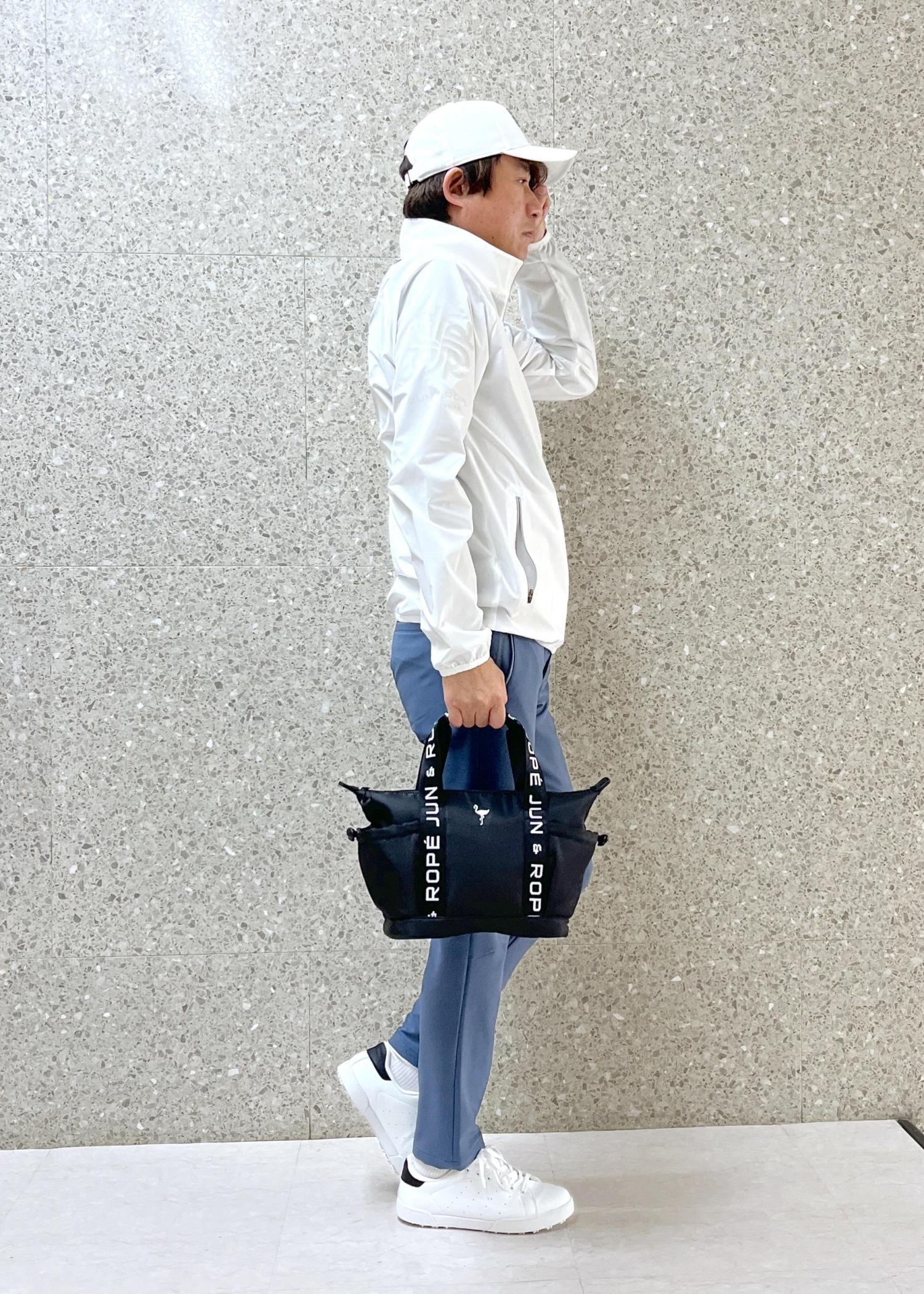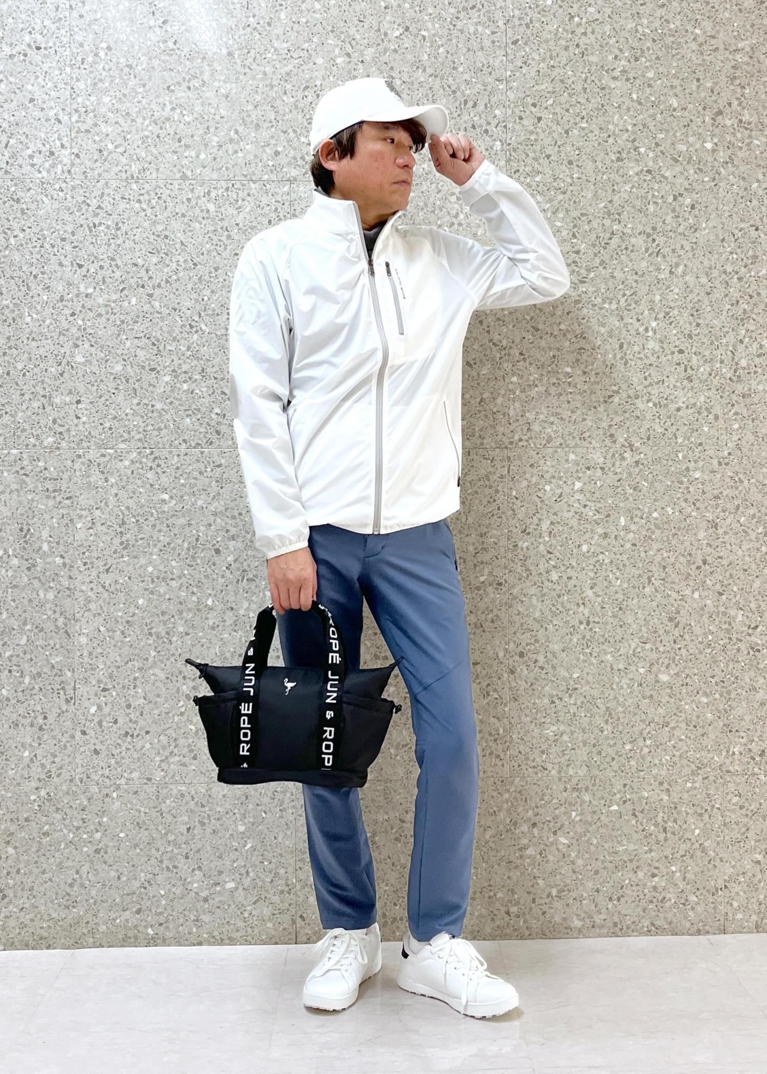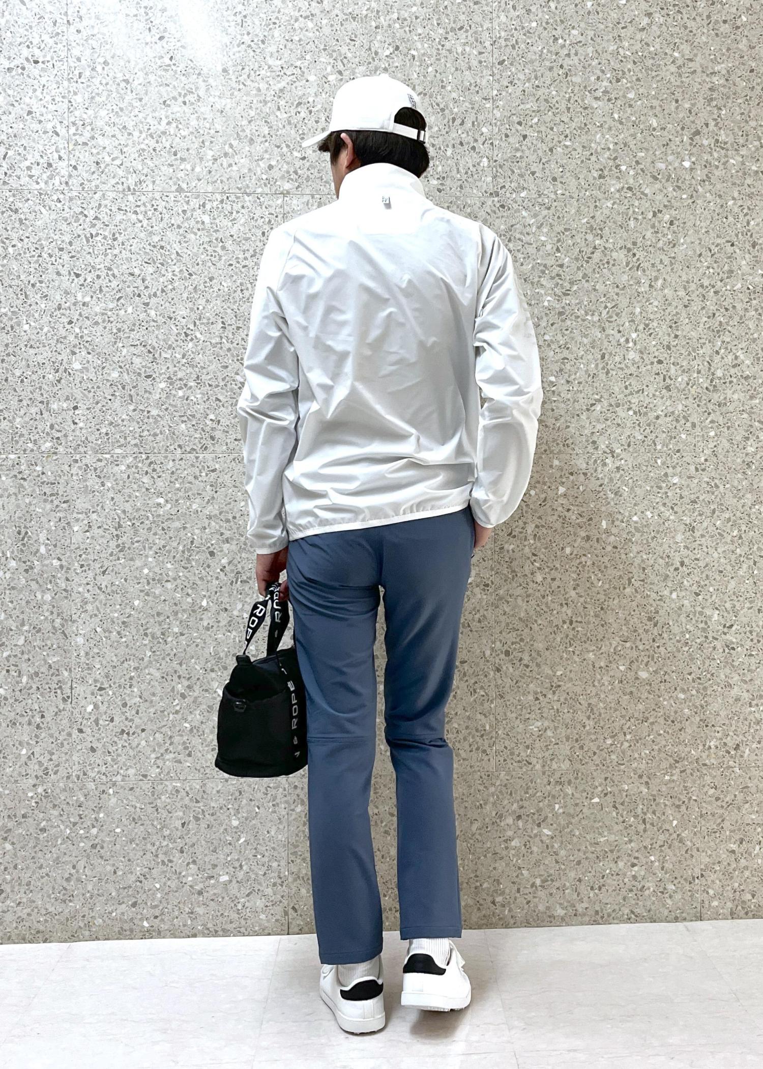 クリーンで軽快な印象のゴルフコーデです。