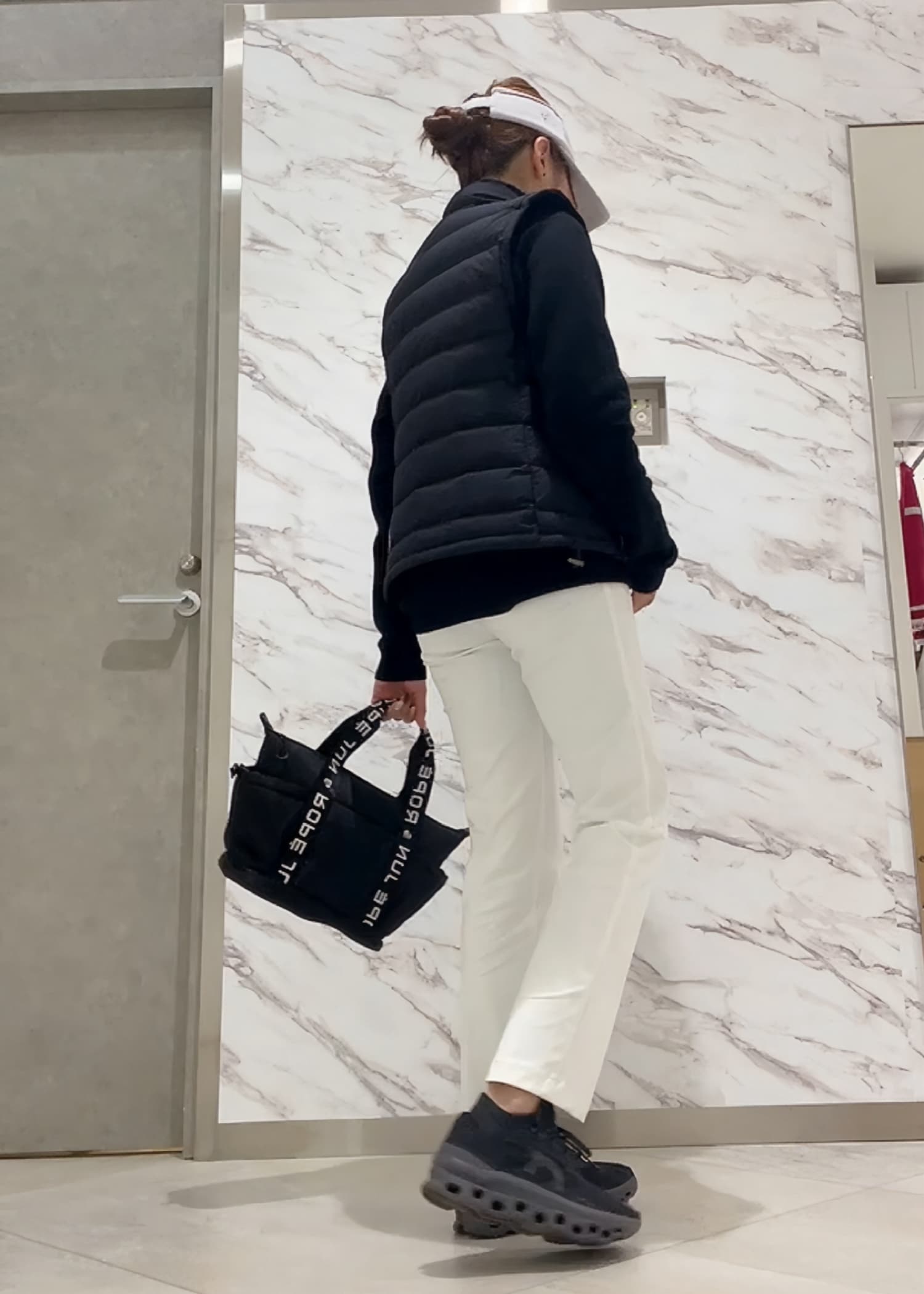 ダウンベストはきれいなサックスに加え、定番人気のホワイトとブラックの3色展開です。