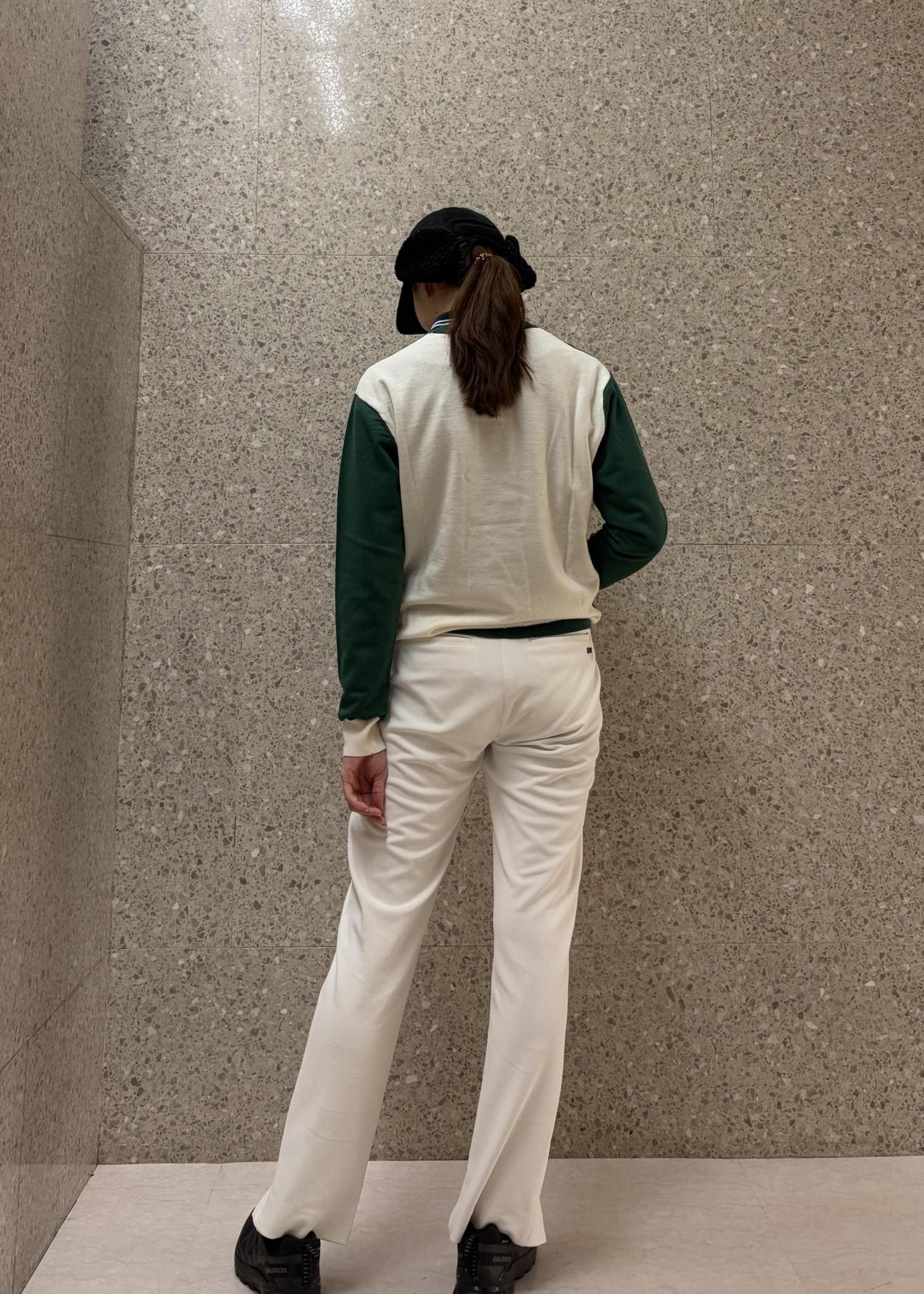 Jun & Ropé【J'aDoRe・店舗限定】ロゴインターシャ長袖ニットグリーン / M¥14,300レビューバックスタイルのバイカラーが程よいアクセントに。