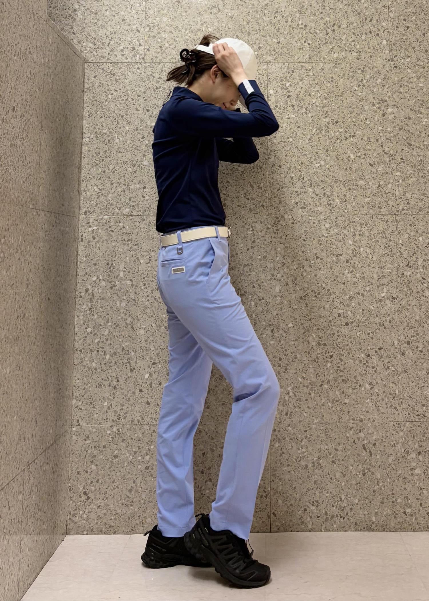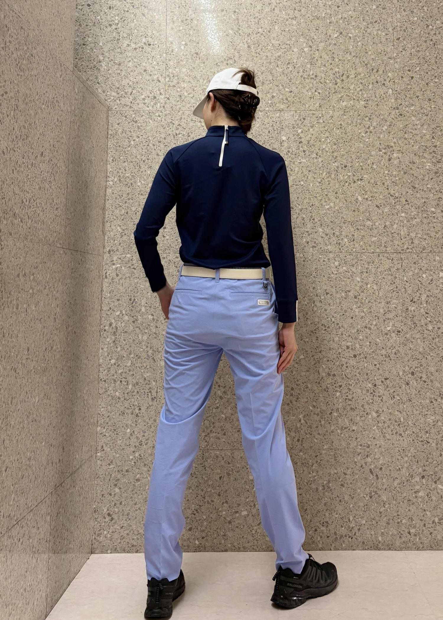 NEW!Jun & Ropéセンタープレス入りスラックスパンツ・UV・吸水速乾サックス / M¥20,900レビューさらっとドライな質感で、真夏まで最適の生地。