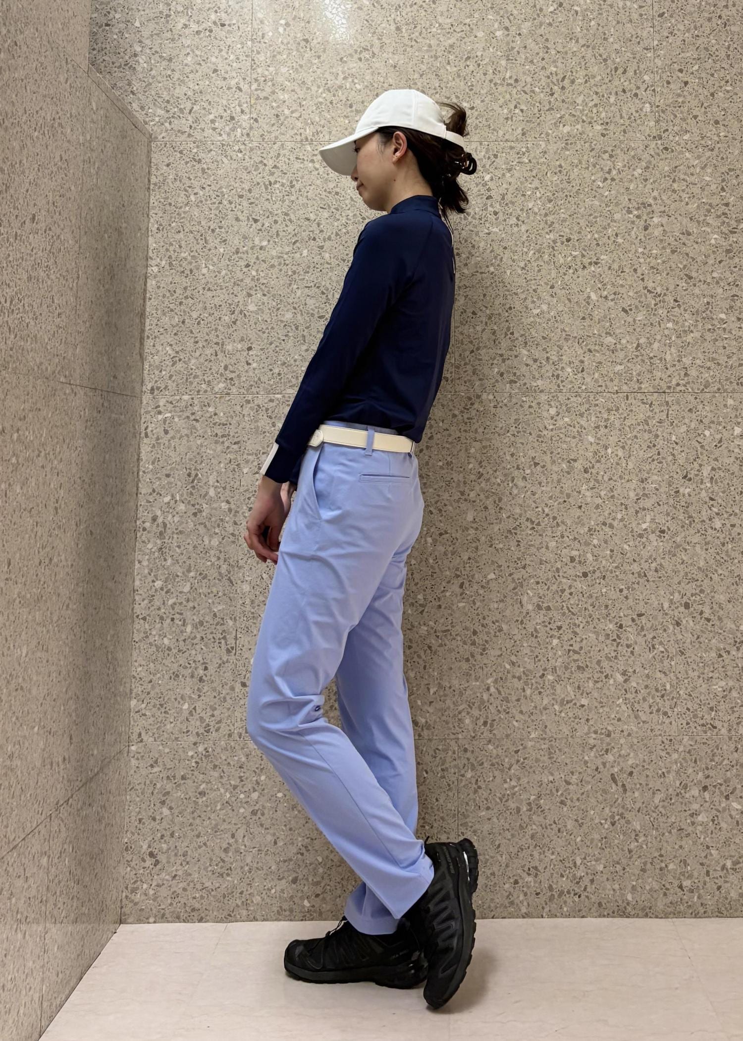 着丈は長めなので、小柄な方はウエストで合わせて、丈詰めも視野にしていただくといいと思います。