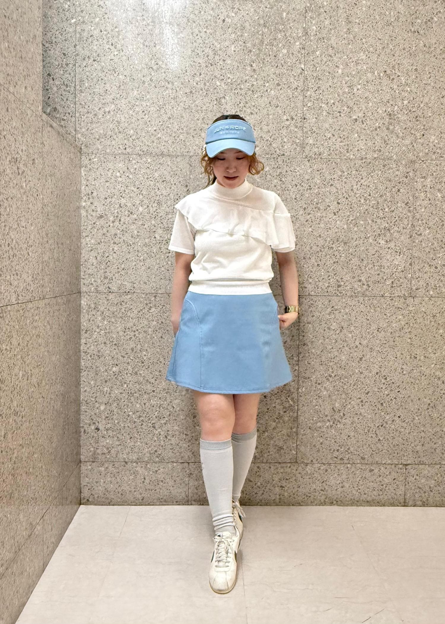 Jun & Ropéフロントロゴ幅広バイザーホワイト / F¥8,800レビューロゴもワントーンで馴染みよく、カジュアルすぎずに被れる。