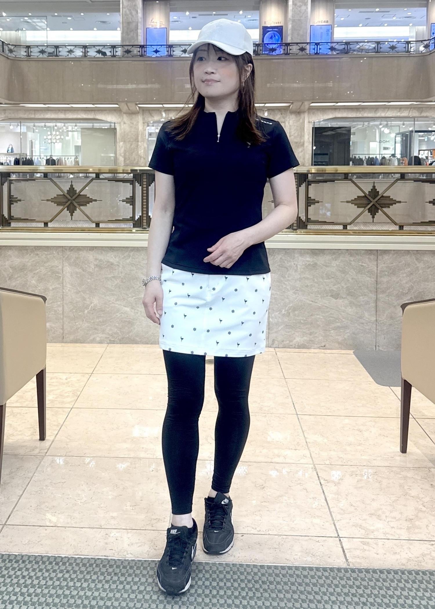 Jun & Ropéストレッチテレコボトルネック半袖プルオーバー/UVブラック / M¥18,700レビューナイロン92%、ポリウレタン8%のやや光沢のある素材。