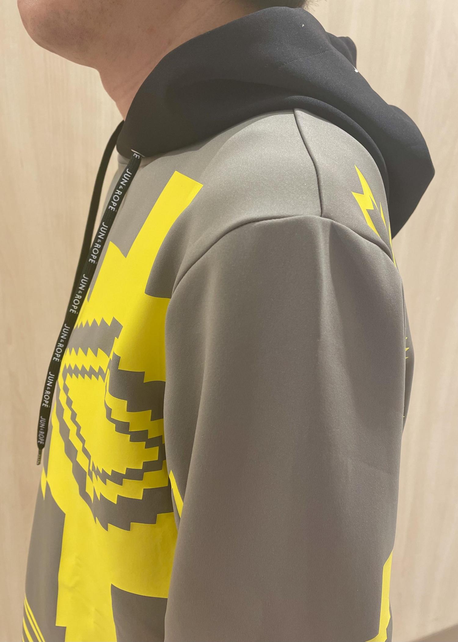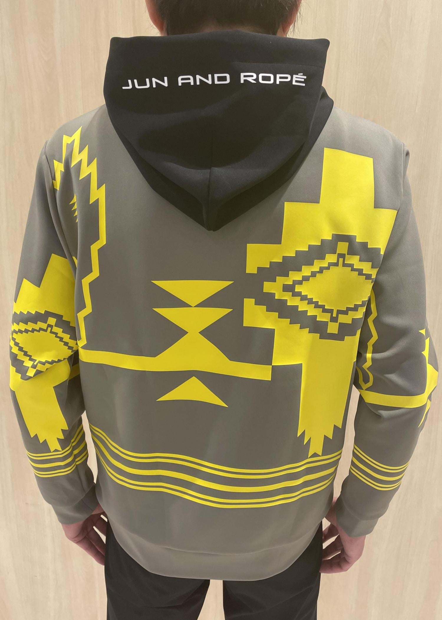 大胆なナバホ柄のプルオーバーパーカーにブラックのテーパードパンツを合わせればワンランク上のスポーティ×綺麗目コーデが完成です。