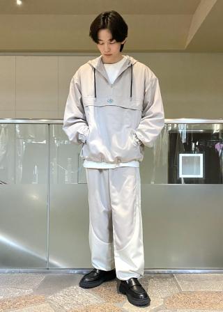 同素材のトラックパンツやショーツとのセットアップスタイルはもちろん、デニムやカーゴパンツなどの古着テイストアイテムと合わせたミックスストリートスタイルもおすすめです。