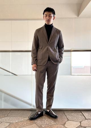 ジャケット単品でカジュアルに着こなす場合は天竺目のキレイめニットで合わせるのがオススメです。
