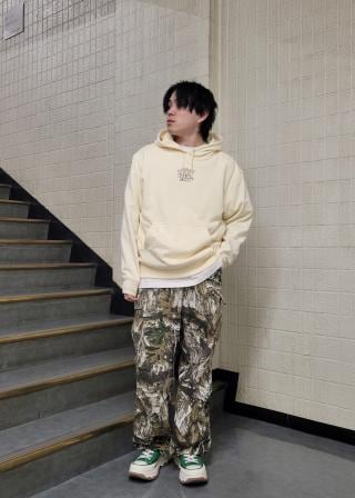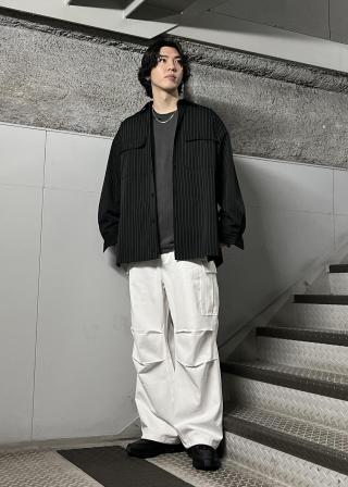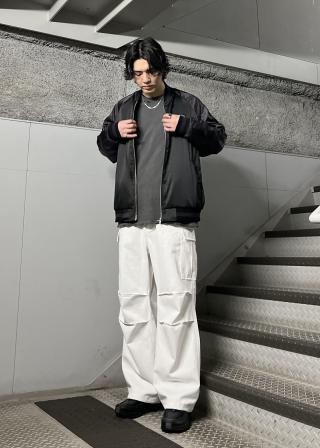定番のカーゴパンツよりもボリューム感のあるM-51のカーゴパンツをベースにサイドポケットのタックや膝のタックなどのディテールにこだわりつつ、クリーンなストリート感を演出するためにリデザインしたアイテムです。またウエストには、ドローコードを入れることで様々な体型に対応し、裾には、ゴムのスピンドル使用にする事で簡単にシルエットを変えることの出来るアイテムです。