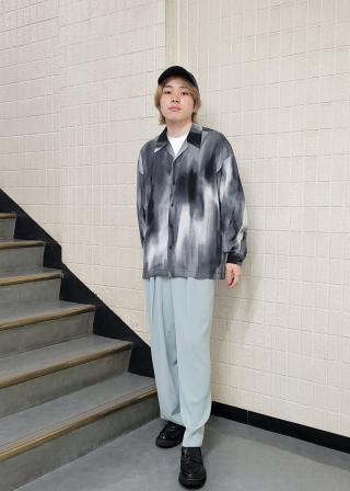 フラワーデザインシャツなど単品力が高いドレープシャツと合わせたモードでシンプルなスタイリングとの相性抜群です。同素材のジャケットで合わせるセットアップと合わせて今年らしくシンプルなリラックススタイルもオススメです。