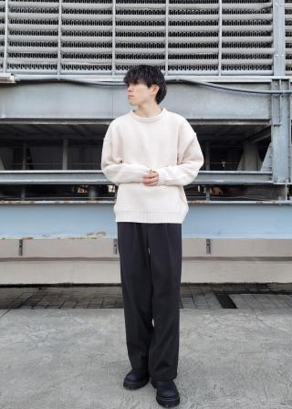 ・ラインが綺麗に見えるワイドストレート。ワイドパンツ特有のダボっとした見え方はしなく、綺麗めな大人の方も着用できるシルエットです。
