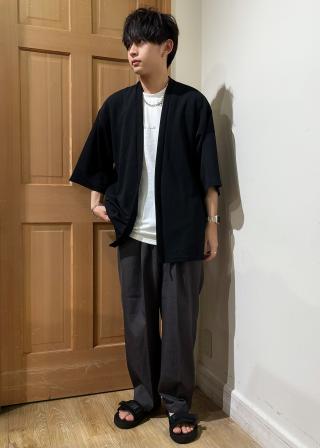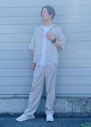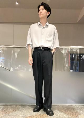 綺麗なワイドストレートパンツなのでオーバーサイズの総柄シャツと合わせたモードなコーデがおすすめです。