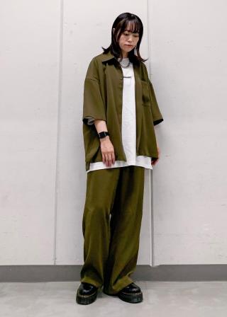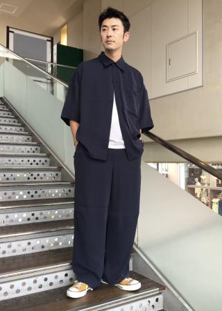 ルーズシルエットの半袖シャツとトレンド感のあるパラシュートパンツをベースとしたワイドパンツのSET UPです。