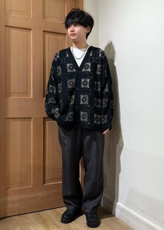 ざっくりとした編み地で独自の配色感でレトロな印象がありながらもトレンドライクに着こなせるルーズカーディガンです。