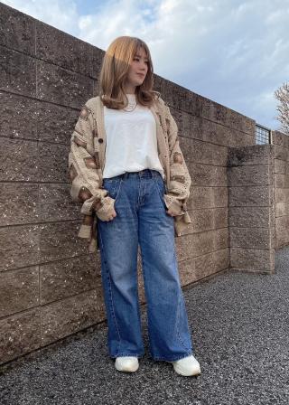 シンプルなインナーとワイドフレアなど綺麗にまとめた合わせがトレンドライクでおすすめです。