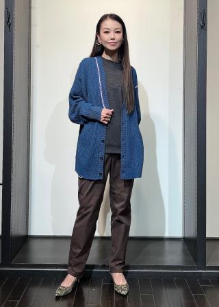 程よいローゲージでロングシーズンで着用可能なアイテム。春先の羽織りとしても活躍してくれます。