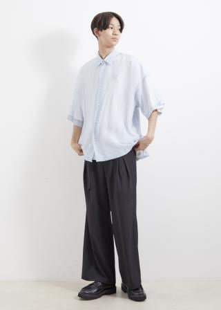 透け感と軽さがわかり易いルーズTシャツとTRワイドパンツに合わせたシンプルなリラックスコーデがおすすめです。