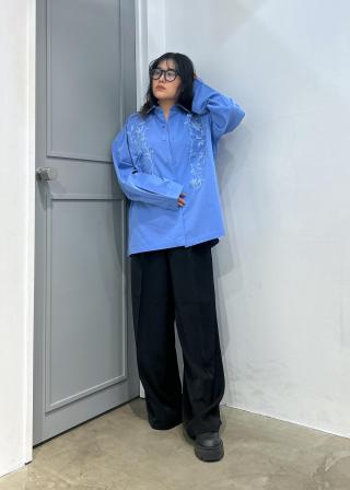 レトロなヴィンテージシャツからインスパイアし独自のフラワー刺繍を施したデザインルーズシャツです。両胸に大きく刺繍したデザインでレトロさを感じながらもサイズはルーズなので今の気分でスタイルに取り入れることが出来ます。単品で存在感のあるアイテムですがブルゾンのインナーとしてチラ見せアイテムとして有効なトレンドシャツです。