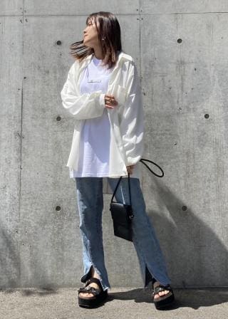 ワイドパンツと合わせたルーズなコーデがおすすめです。