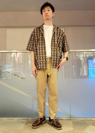 リラックス感のある生地感とデザインなので、イージーパンツなど履き心地の良いパンツなどとの合わせがオススメです。