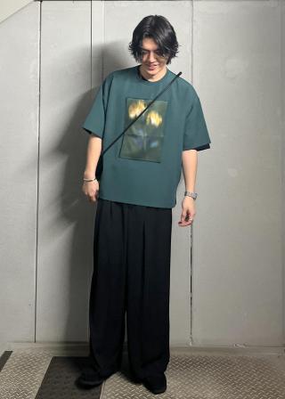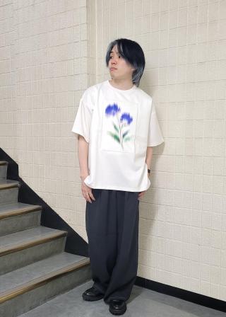 ぼかしをかけたアートデザインのフラワーグラフィックTシャツです。アートを貼り付けたデザインにすることで刺繍とグラフィックの凹凸感が他にはないデザインTシャツに仕上がりました。シンプルな配色感なのでシャツのインナーにも合わせやすくモードな装いにぴったりです。