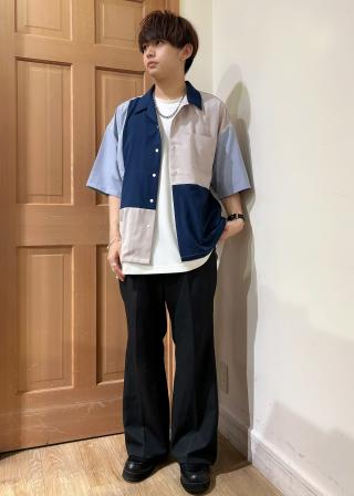 同素材のカラーを配色でランダムに組み立てたデザインにしています。独自の切り替えと配色感で一枚で決まる個性的なデザイン。