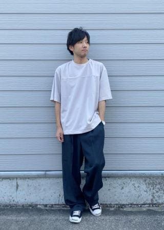 胸にフットボール切り替えのデザインを入れることでシンプルながらもトレンド性を感じるさりげないカッティングがコーディネートのアクセントになっています。