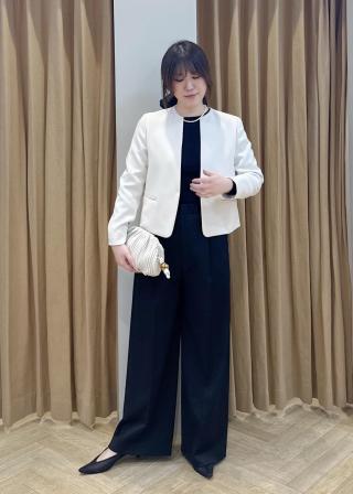 同素材のジャケット、テーパードパンツ、ワイドパンツ、タイトスカート、ペプラムブラウスと組み合わせれば、セットでも単品でも自由にコーディネートできます。