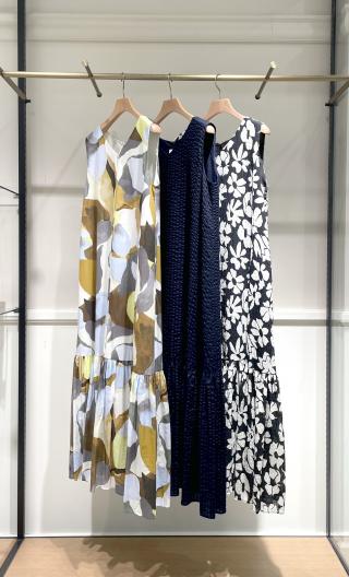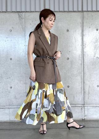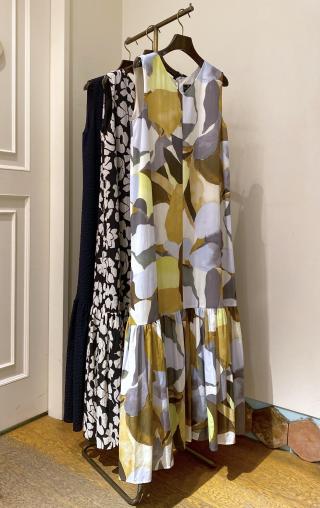1枚で様になるAラインティアードワンピース。女性らしい分量感と長めの丈でおつくりしていますので、夏らしく着用いただけるアイテム。タウンでもリゾートでもきまるデザインとプリントです。ノースリーブですので、シアーなシャツやブルゾンと合わせて、タウンな着こなしも可能。