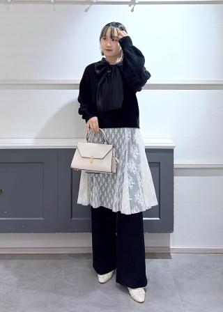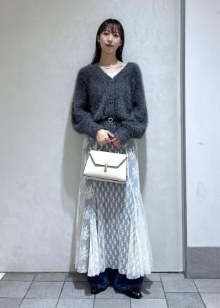 レース編みがとっても素敵なスカート!これはリアルバイしたい。オチ感のある素材感なので広がりすぎないフレアデザイン。