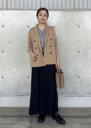 タイトスカートと合わせれば、コンパクトなシルエットが際立ち、バランスの取れた美しいスタイリングに。ウエストインすることで、より女性らしい印象になります。