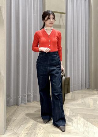 首元は深めのVネックでインナーが見える心配はないですが、気になる方は上までカバーできるキャミソールなどを合わせるとおすすめです♪